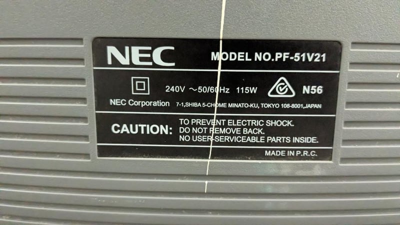 Colour Television, NEC, PF-51V21, 240V, 50/60Hz Note, Signs of Wear, Untested, Paint Mark on Rear of unit