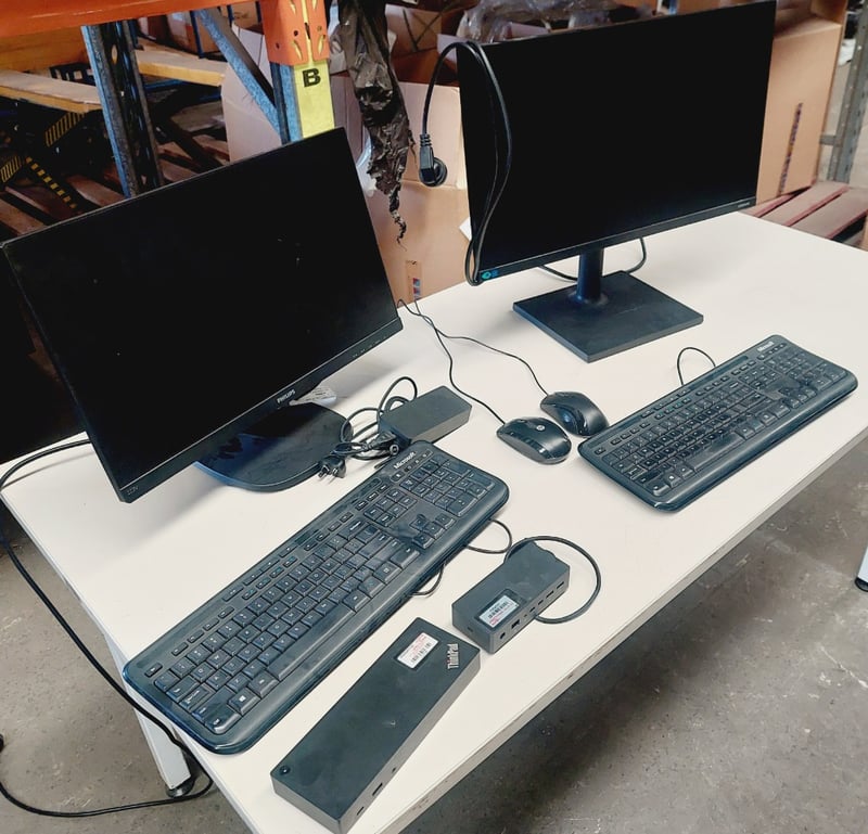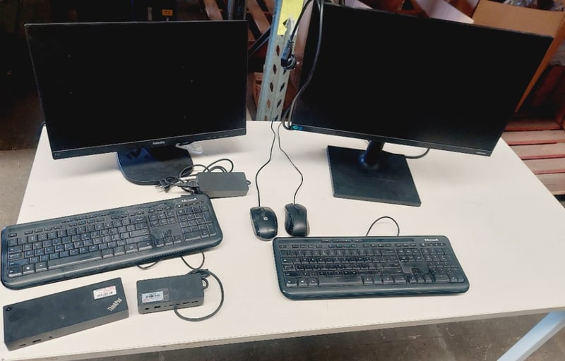 Assorted computer components, including Samsung T45F 24" Business Monitor Model: F24T450FQE, Philips 22" LCD monitor model 223V7QHSB/75, mouse, keyboards and more...Sold as a lot.Note: items are untested, signs of wear.