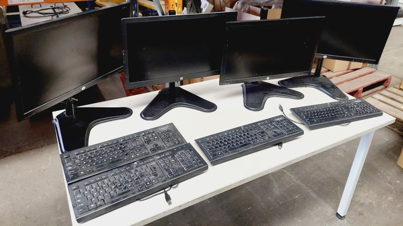 HP Compaq LA2306x 23-inch LED-backlit LCD monitors, kebords and more...Sold as a lot.Note: items are untested, signs of wear.