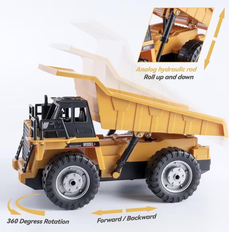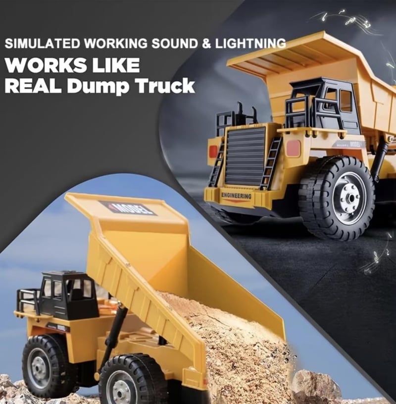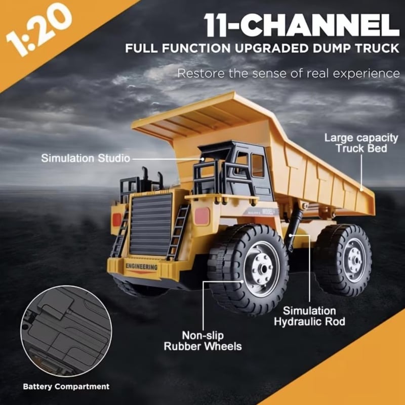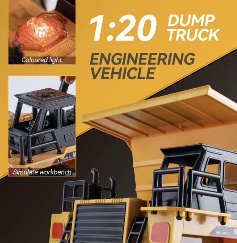 1:20 Scale Remote Controlled Dump Truck - 11 Channel Construction Vehicle Model, Equipped with Hydraulic Rods And a Realistic Dump Truck Bed, Featuring Authentic Lighting Effects And Multifunctional Controls