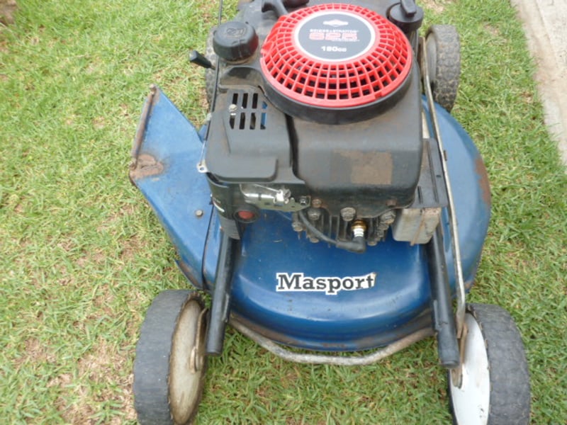Lawnmower . Masport H/duty large utility mower . 4 stroke . New oil , Air filter . Blades sharpened .
