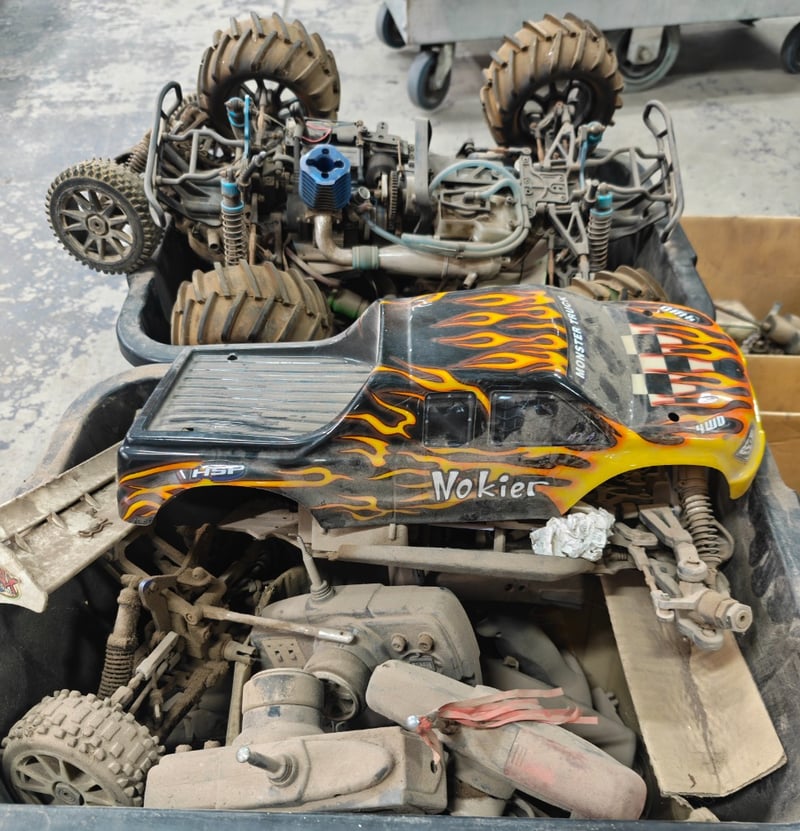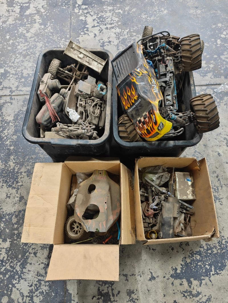 Spare parts, collection of used hobby-grade remote control (RC) vehicles and various spare partsSold as lot