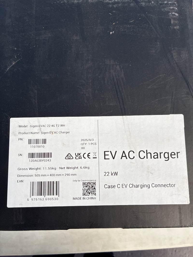 AC Charger, Sigenergy, Model: Evac224gt2wh, 22KW Case C EV Charging Connecter, New In Box.