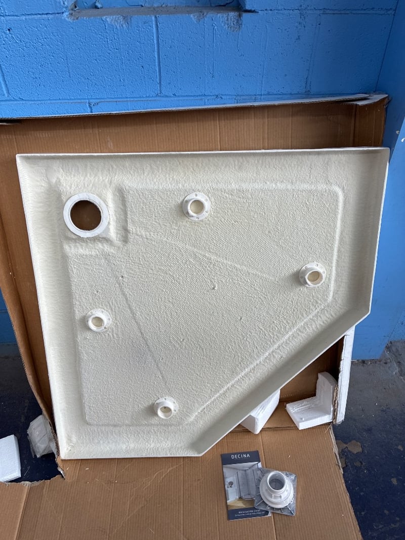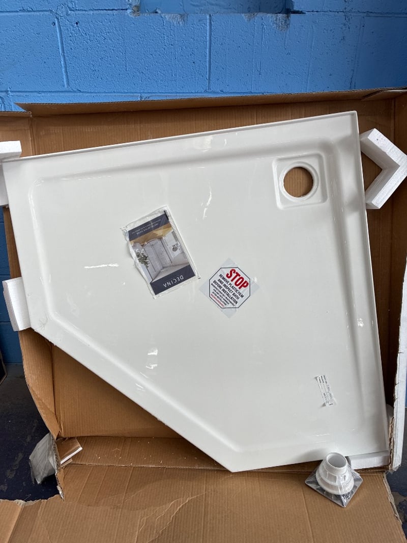 Shower Base, Decina, Corner Shower Base, Includes Drainage fitting.Sold As Lot.