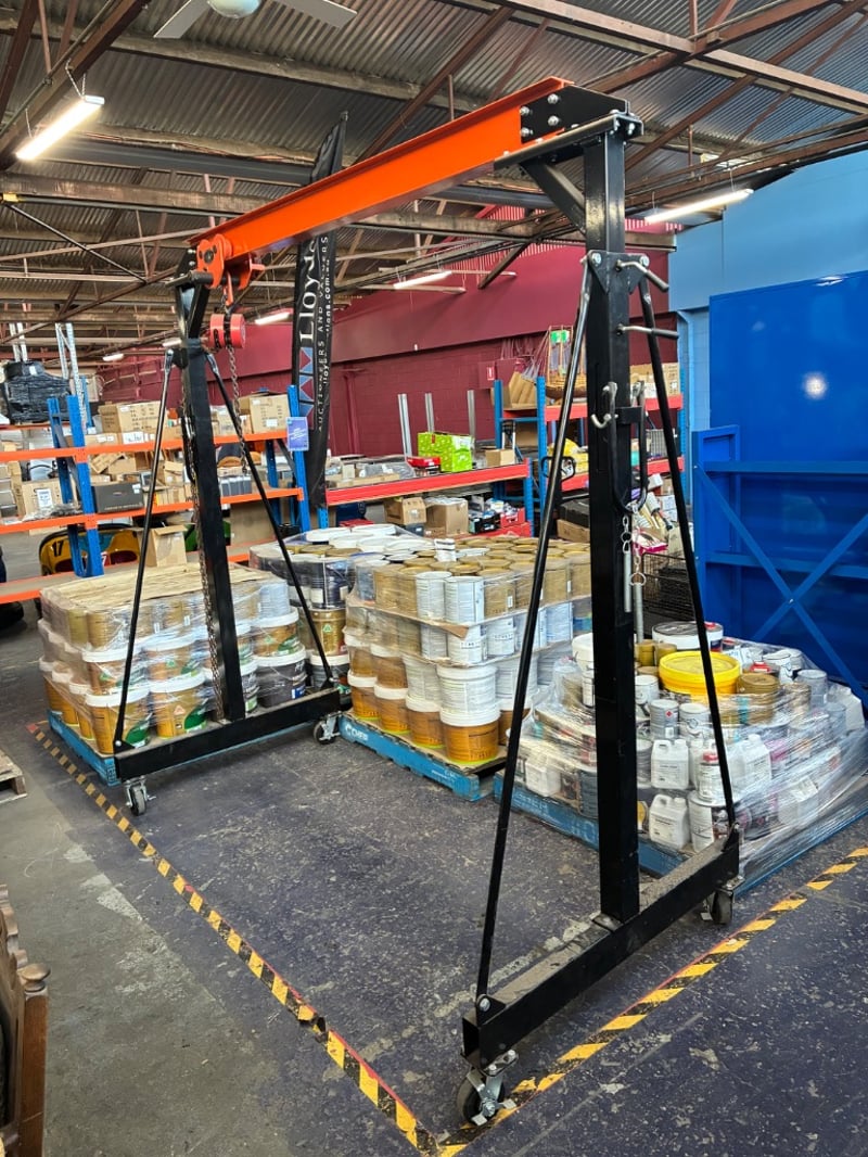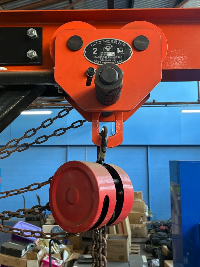 Gantry, GCL, Industrial Gantry, Including 1 Ton 3 Meter Lifting Chain, On Wheels. Note: Items In Background Not Included.