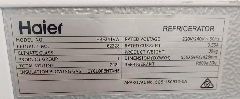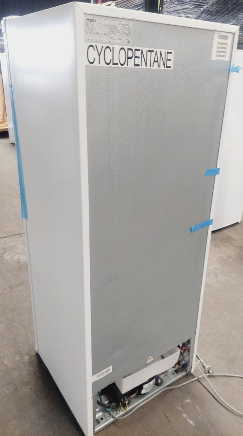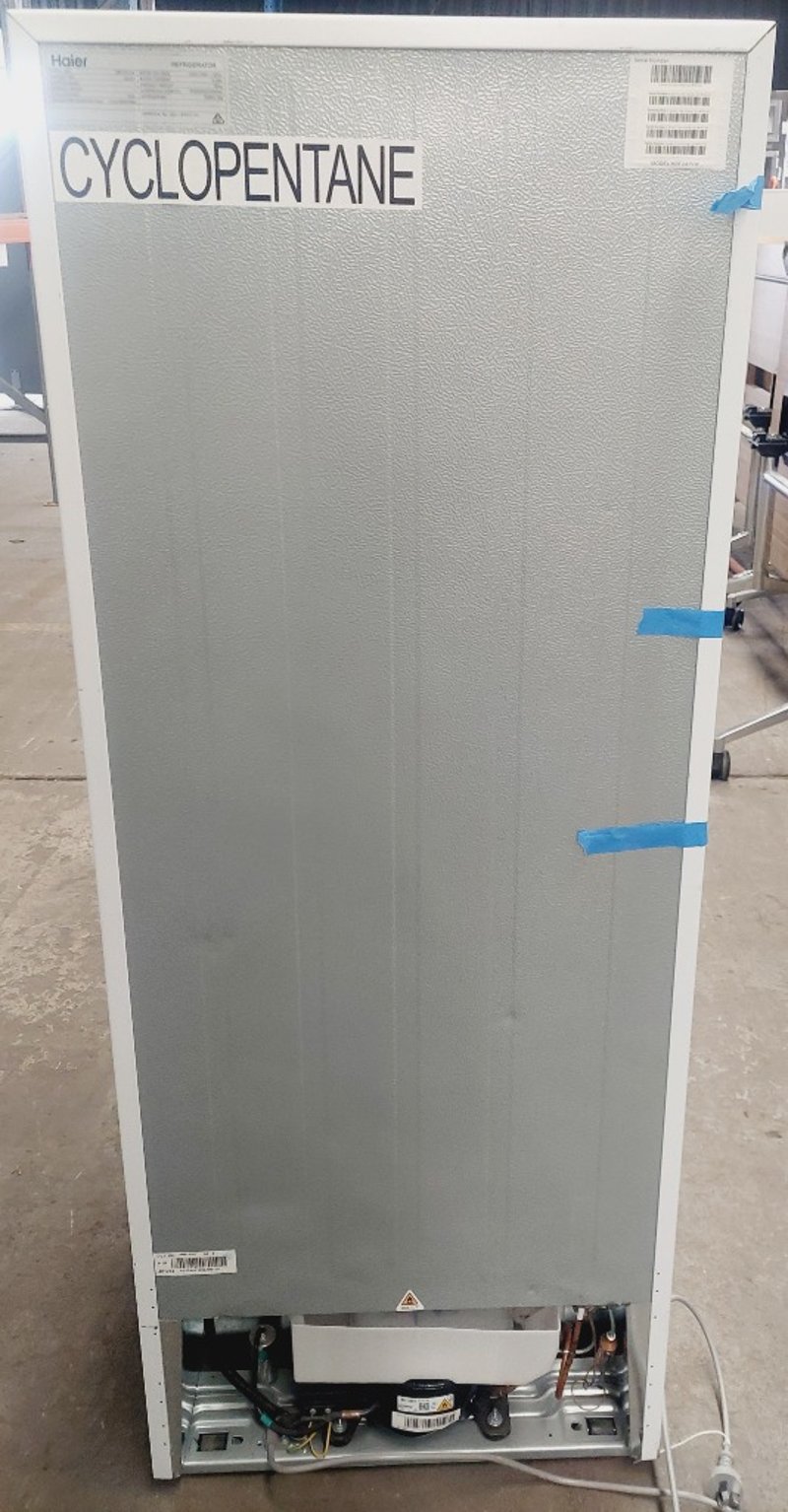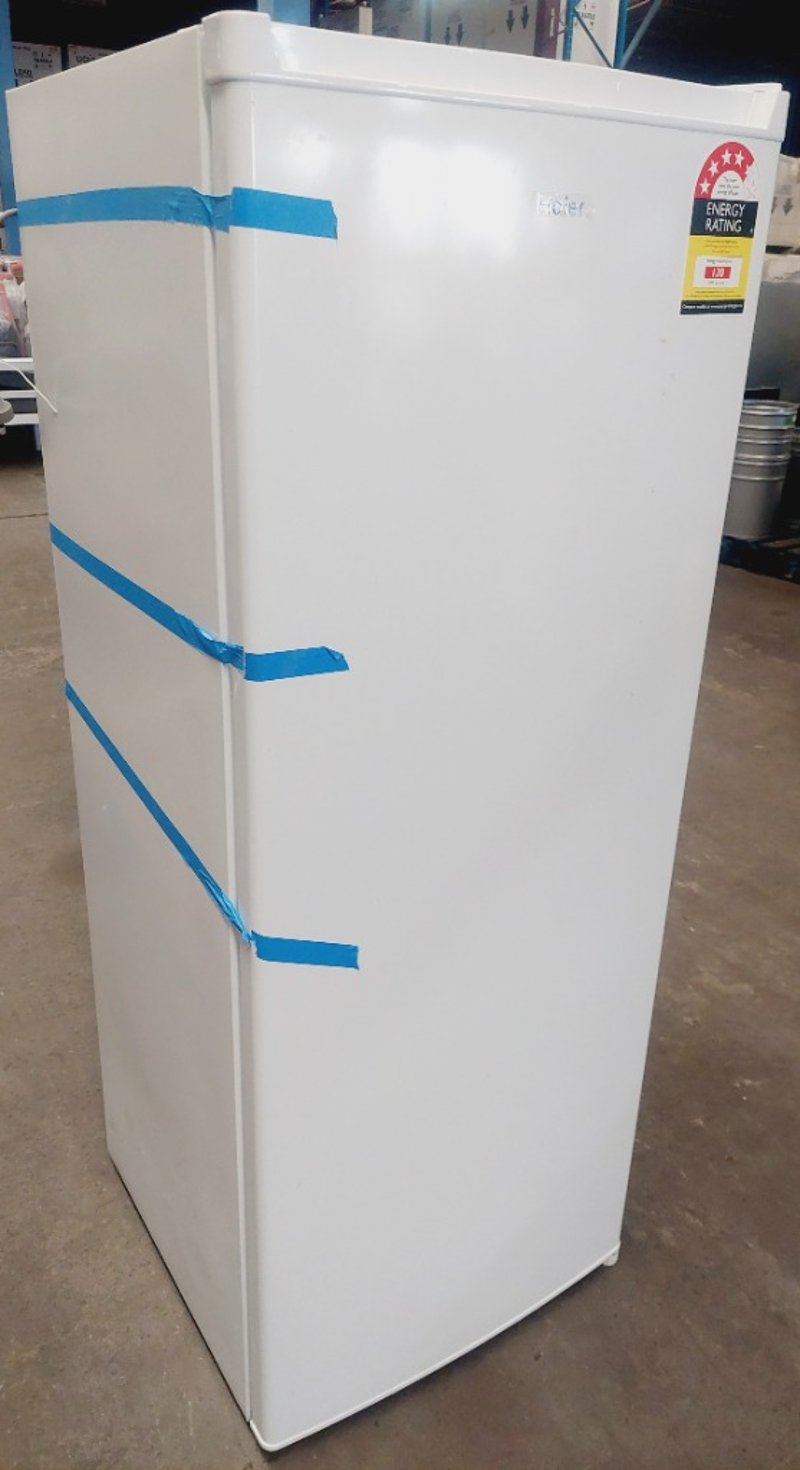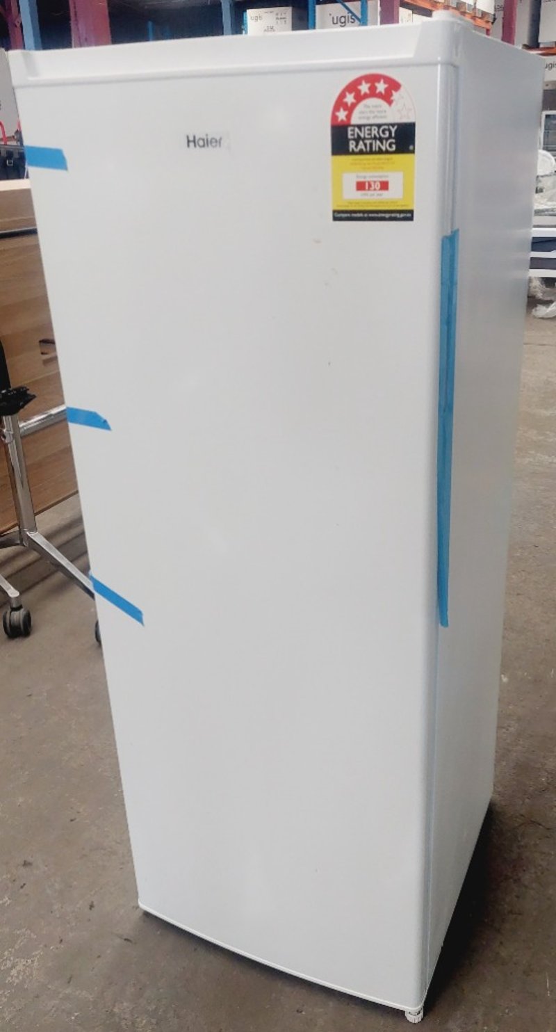 Haier 242L 300 Series Vertical Refrigerator Model HRF241VW Serial number: 62228 Dimensions: 142cm H, 55cm L, 54cm W Note: item is untested, signs of wear.