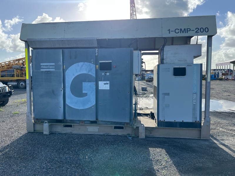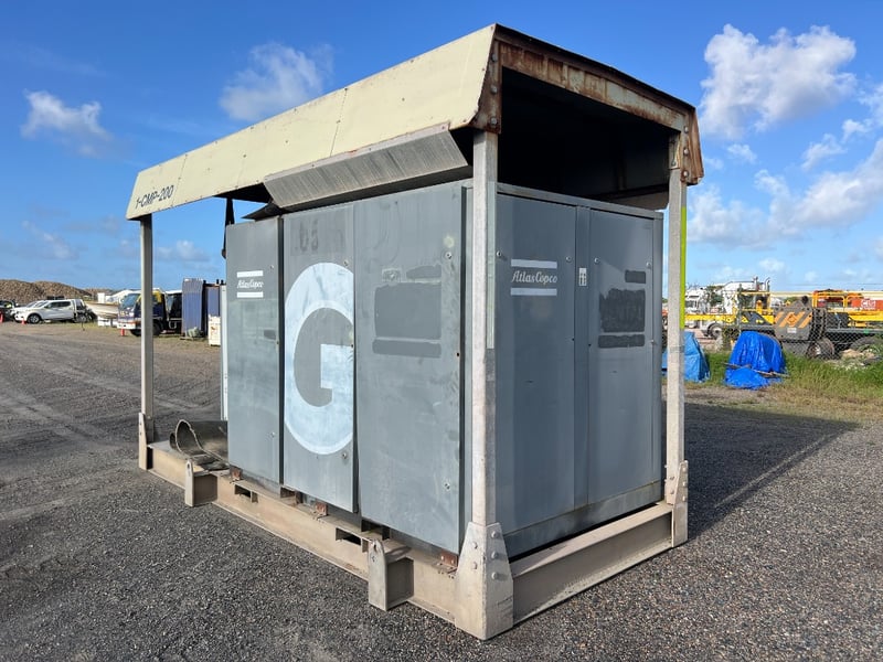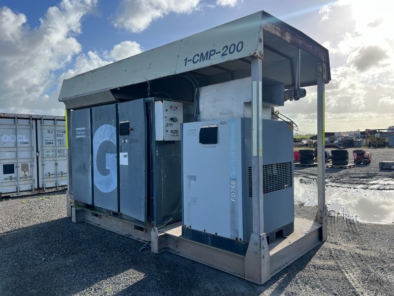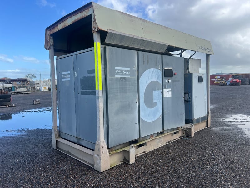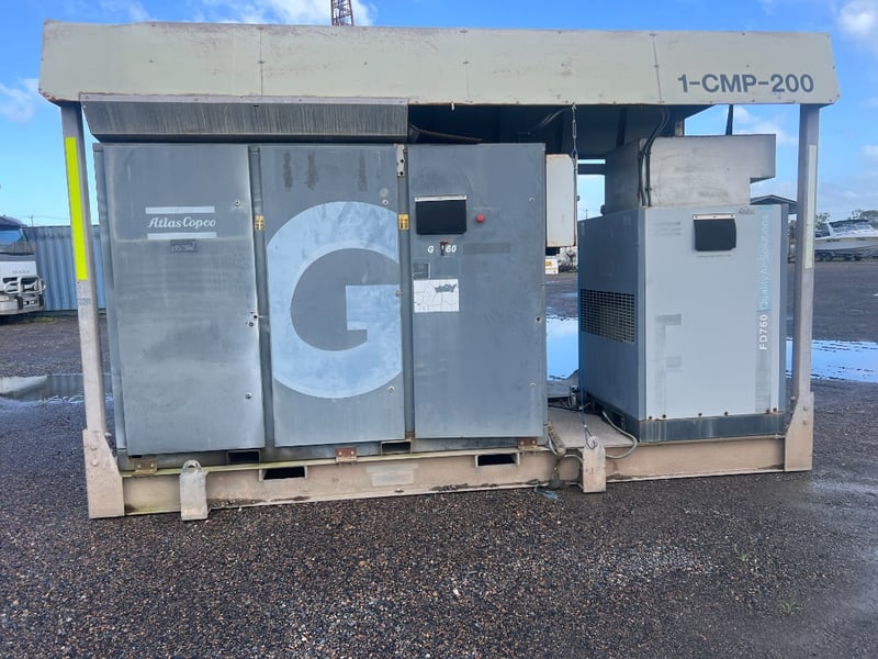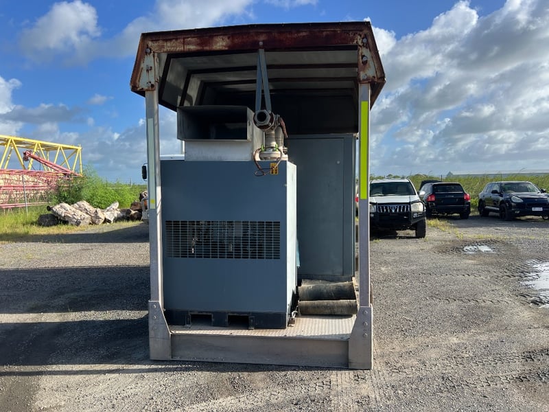 This professionally engineered skid combines a Atlas Copco G-Series Rotary Screw Compressor with a high-efficiency FD760 Refrigerant Air Dryer, all housed under a heavy-duty weather-protected steel canopy. Designed for 24/7 industrial performance in demanding environments.