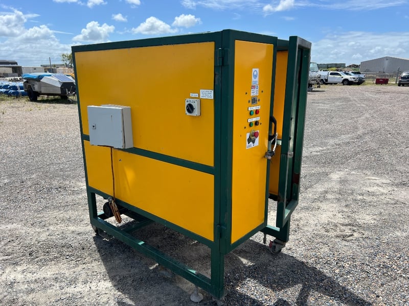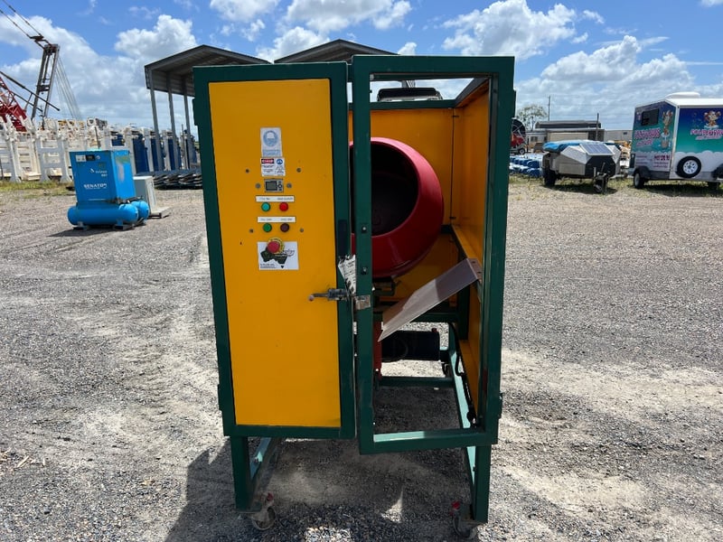Wallerby heavy-duty coal sample rotary drum mixer enclosed in a fully guarded safety cabinet. Purpose-built for mining laboratory and coal sample preparation applications. Designed for controlled batch homogenising of coal fines prior to testing and analysis.
