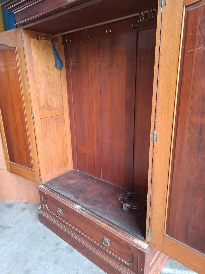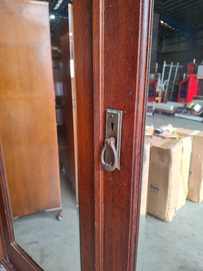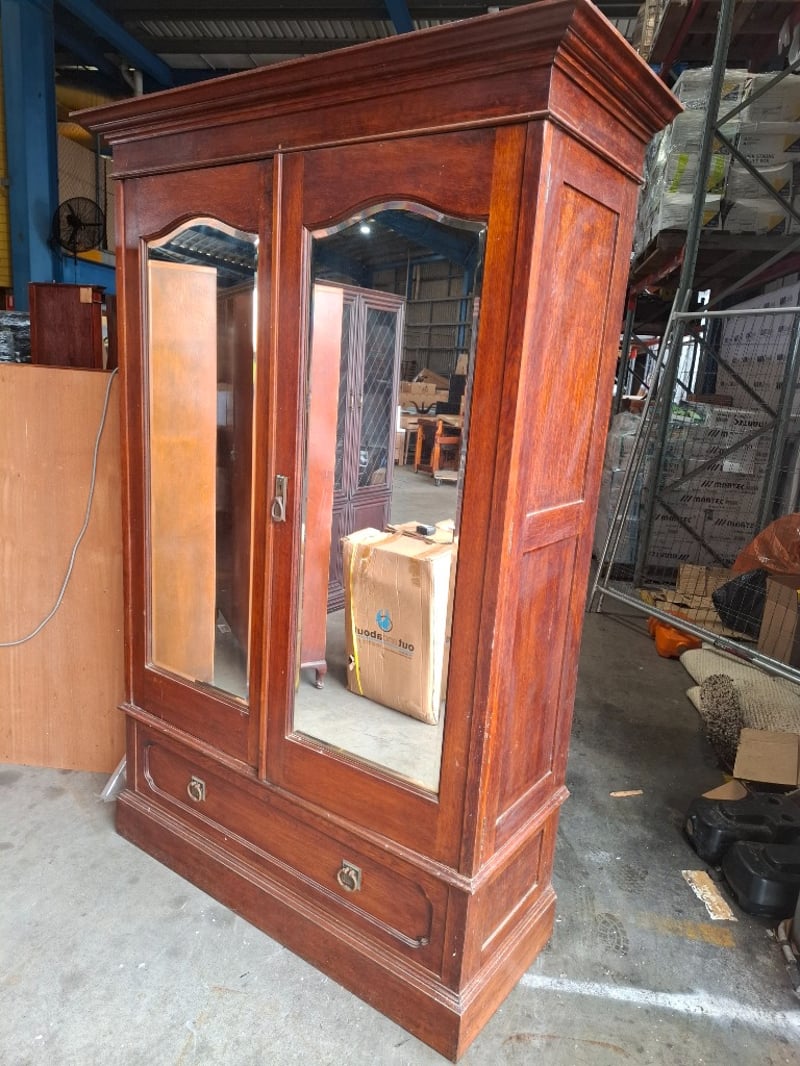 2 mirrors doors , chery colour timber wardrobe, 1 drawer