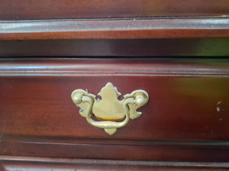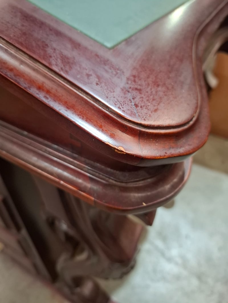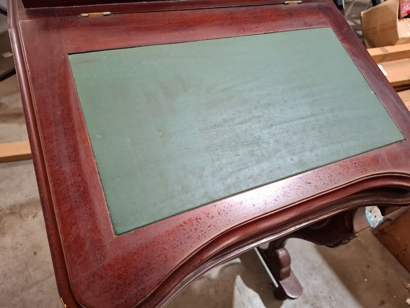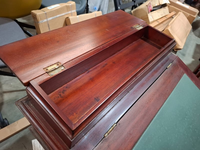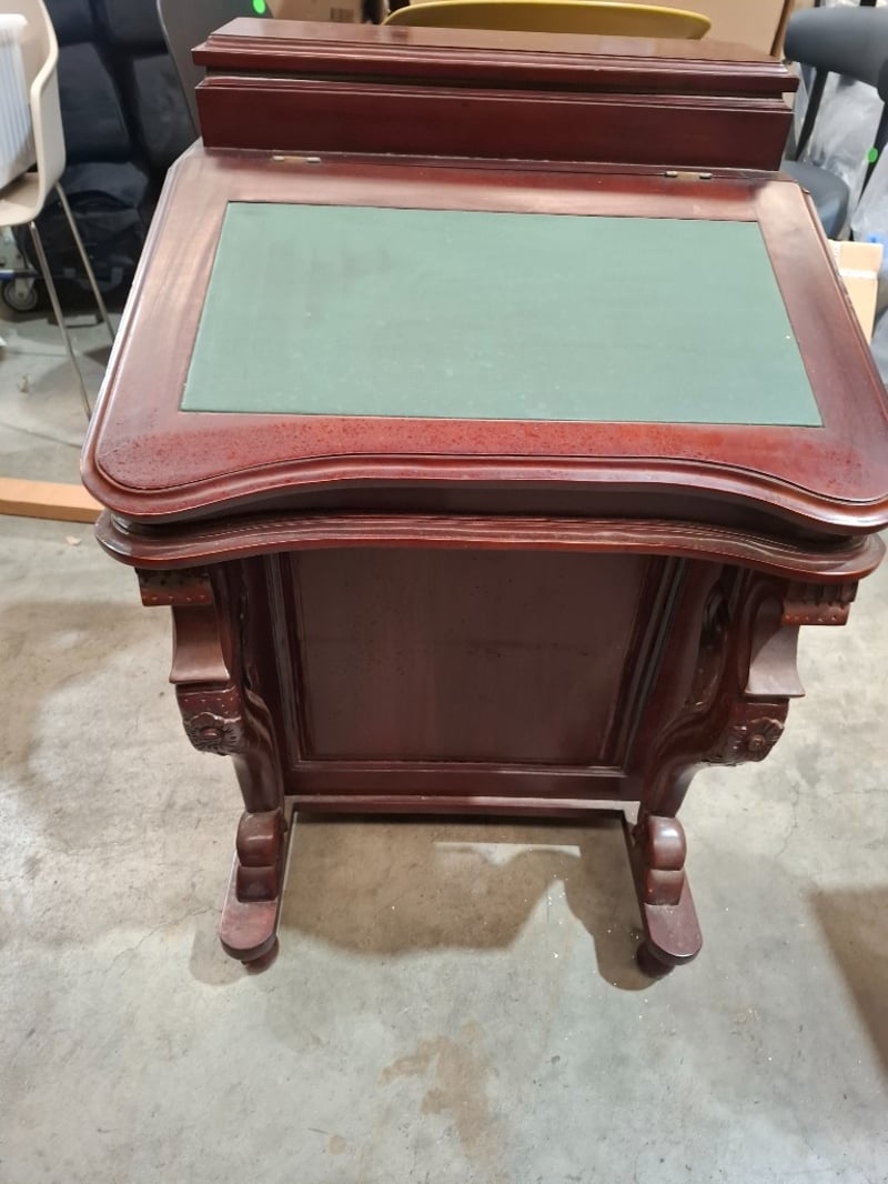 Victorian style writing desk, cherry timber finish, 8 out side drawers, 8 inside drawers