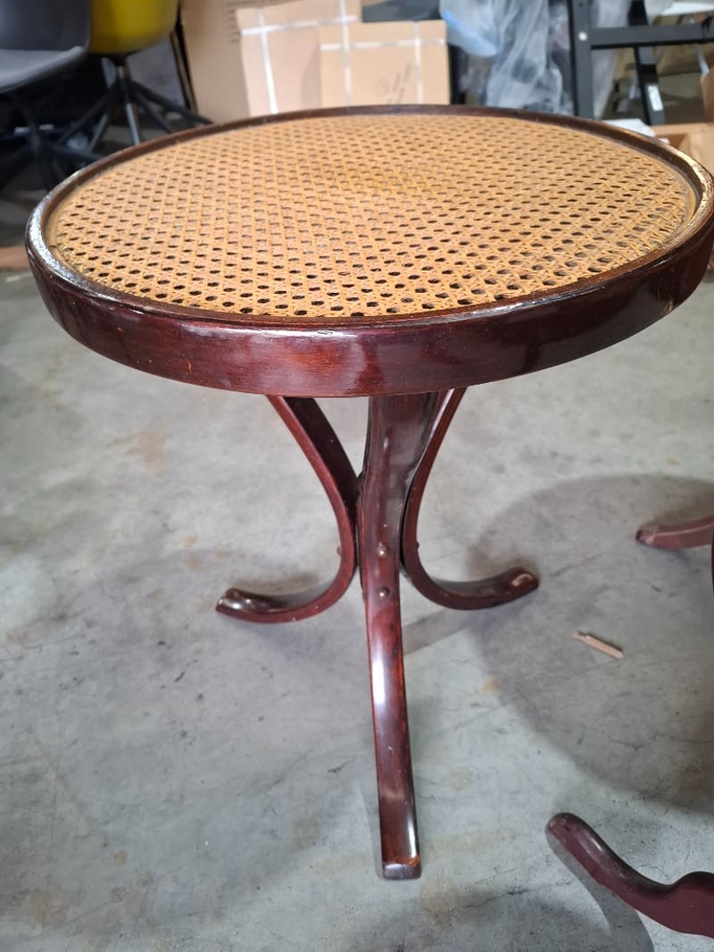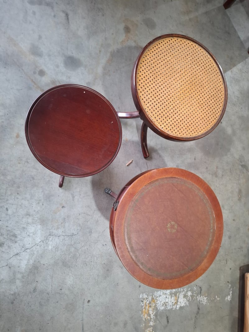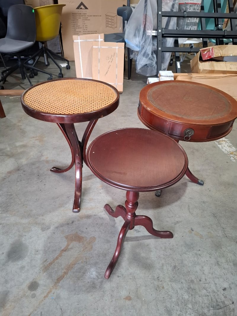 3 x coffee round tables, timber, model vary Note: Cleanning required, scratches, marks
