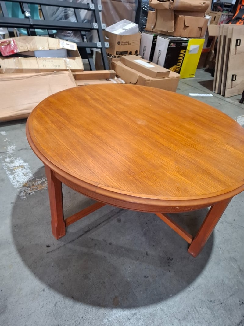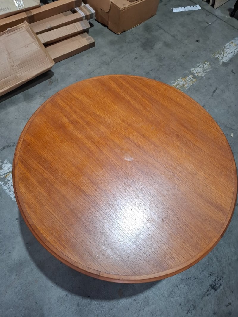 Timber Round coffee table Dimensions: 99 cmDiameter x 48cmHNote: Cleanning required, scratches, marks