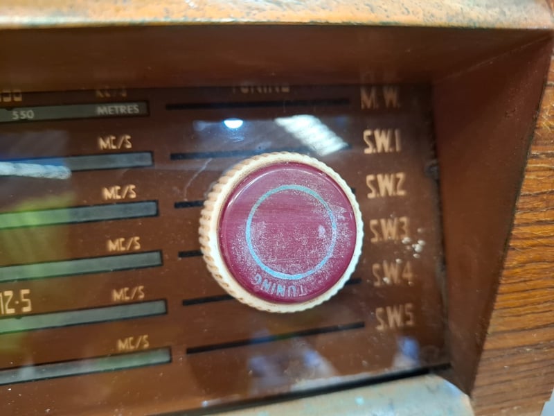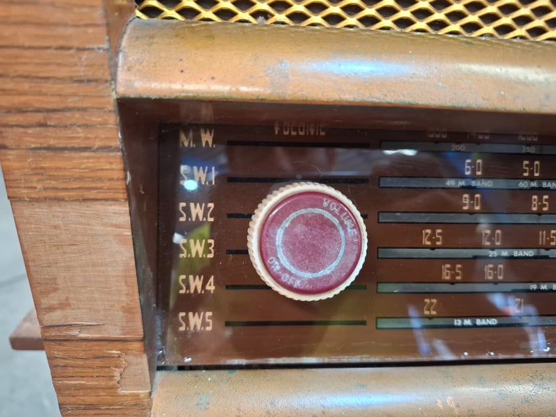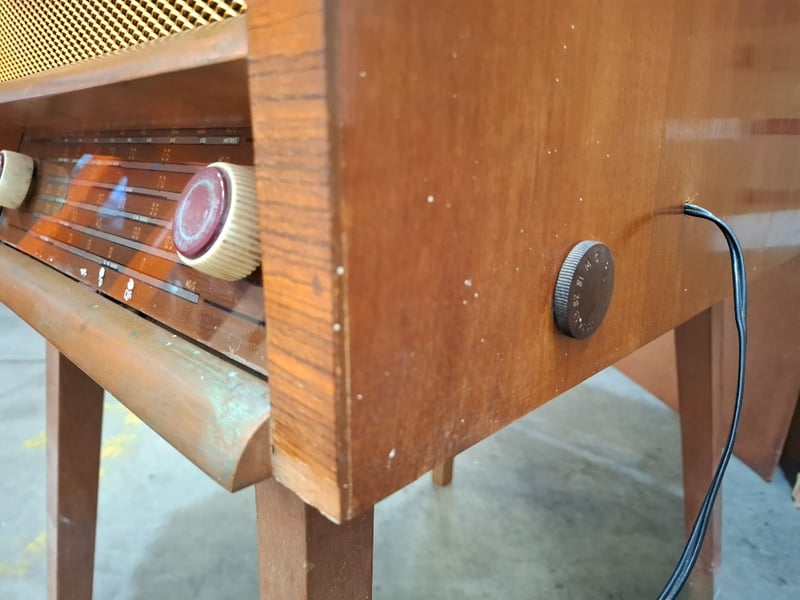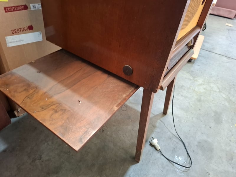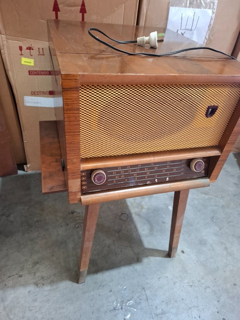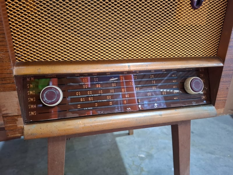 freestanding radiogram/ console radio with a phonograph turntable.