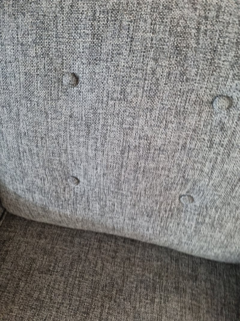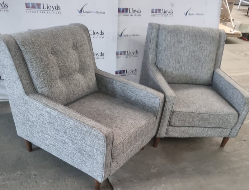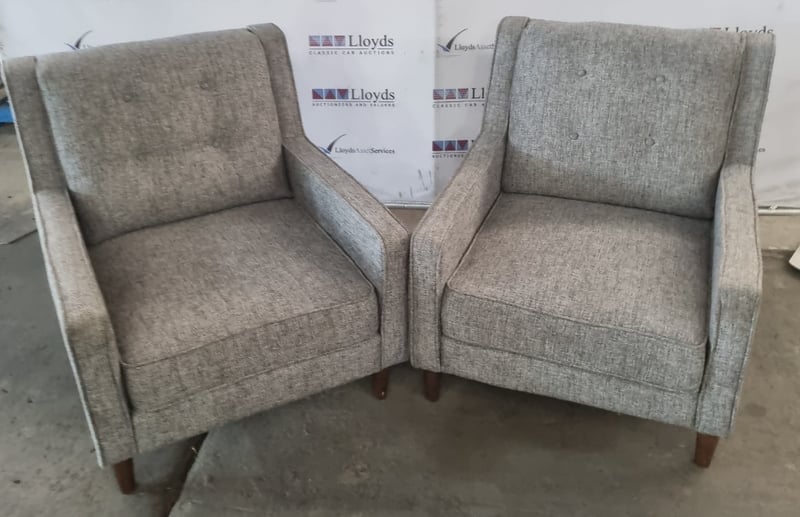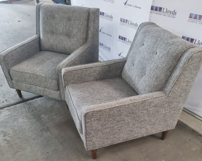 Sofa Chair, Single, upholstered,charcoal grey. Dims: 150 x 135 x 100cm Sold as lot Note: signs if wear