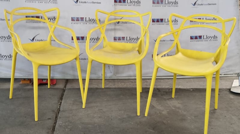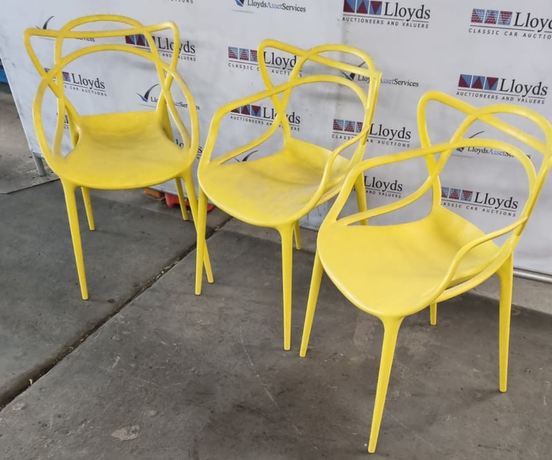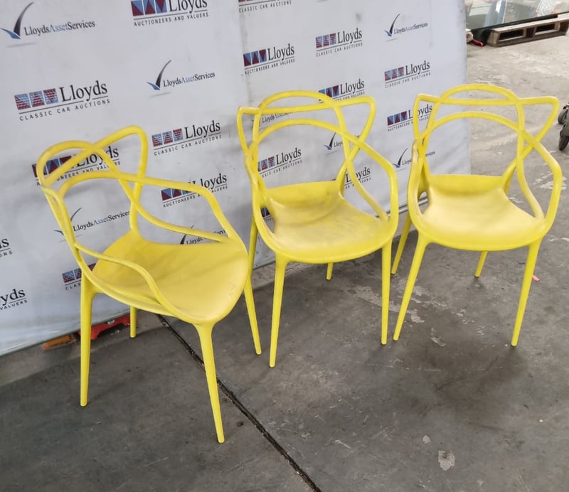 Contemporary style Chairs, yellow, plastic Sold as lot Note: signs of wear