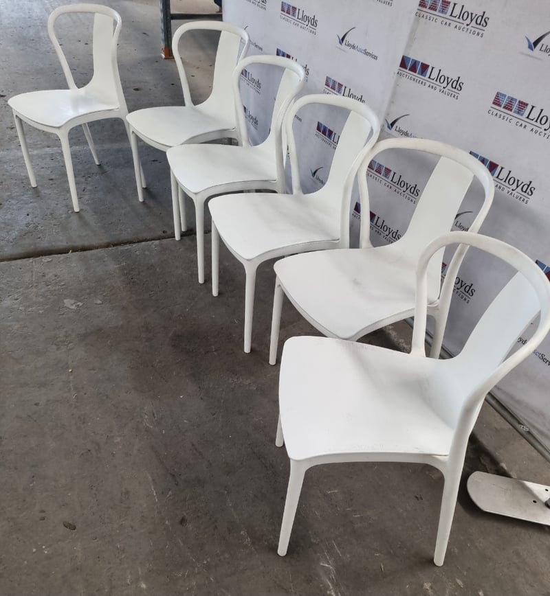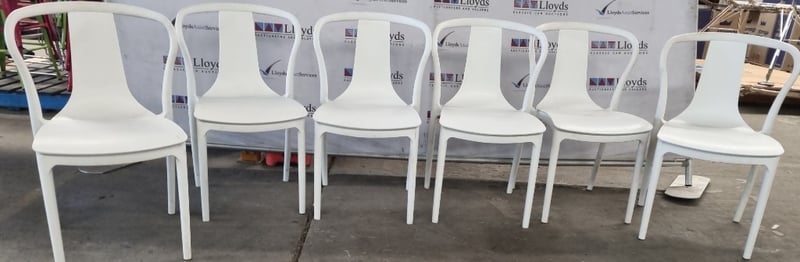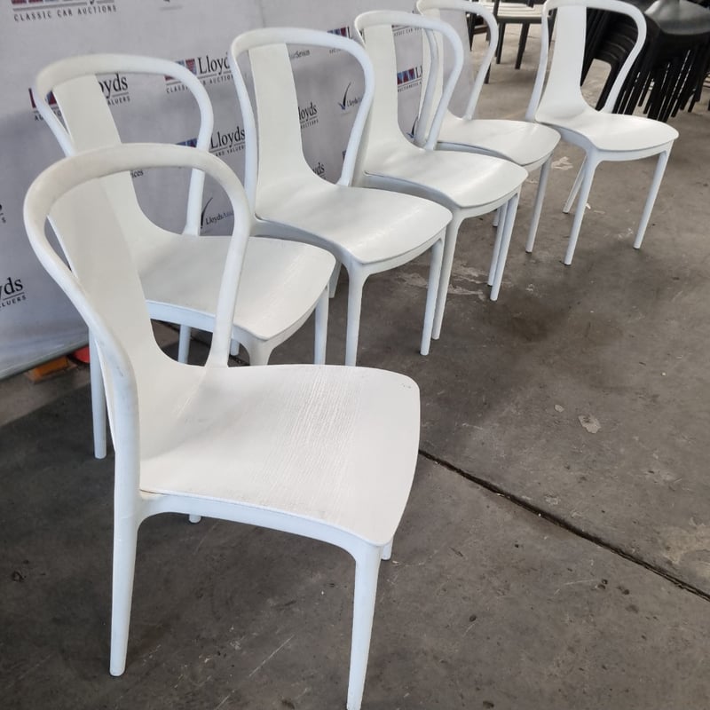 Outdoor chairs, white, durable Sold as lot Note: signs of wear
