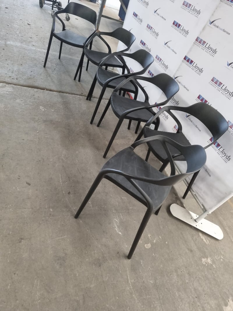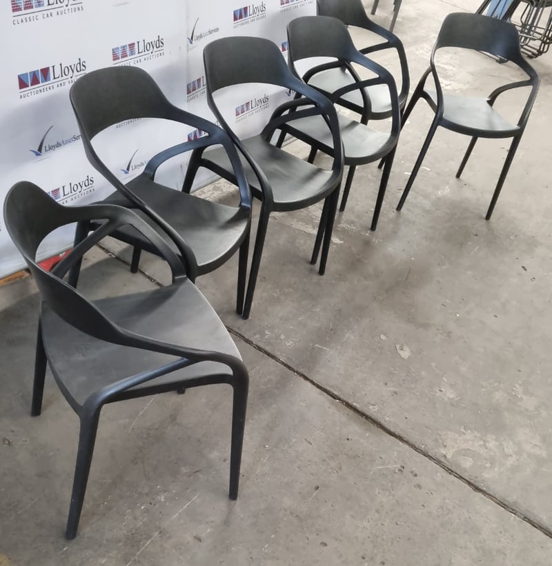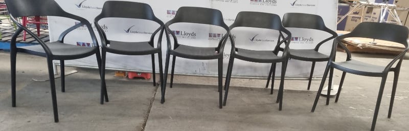 Outdoor chairs, black, durable Sold as lot Note: signs of wear