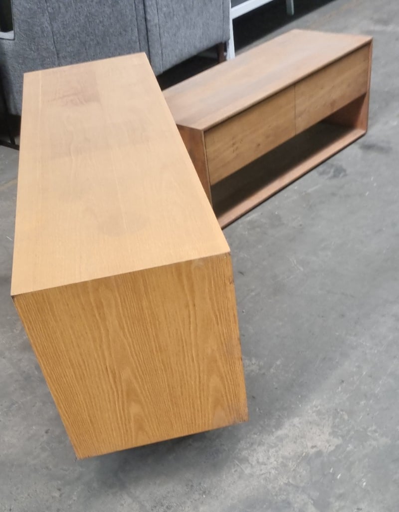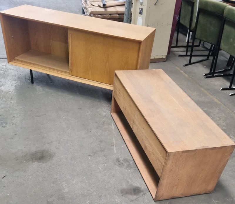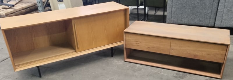 Timber furniture set comprising two storage units. Sold as lot Note: signs of wear