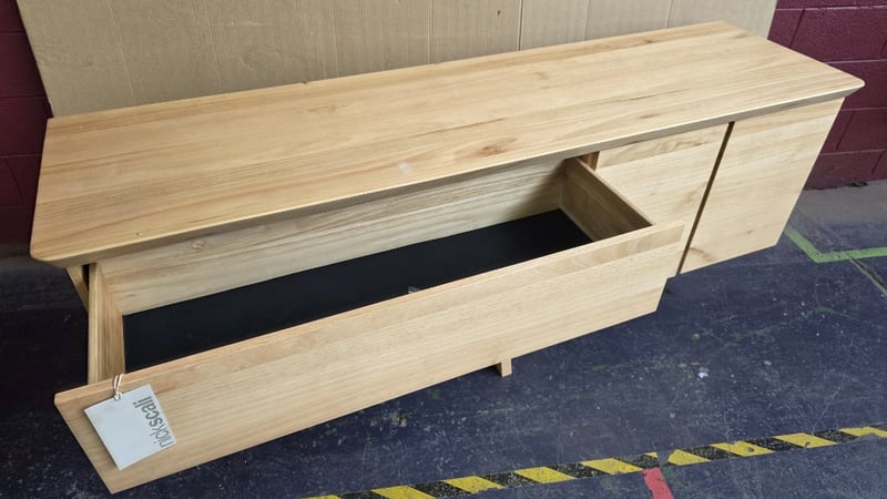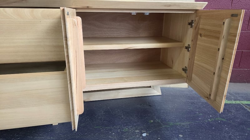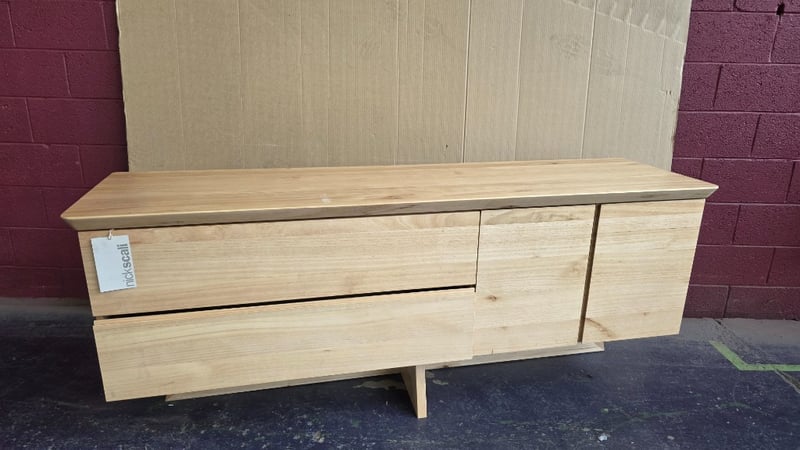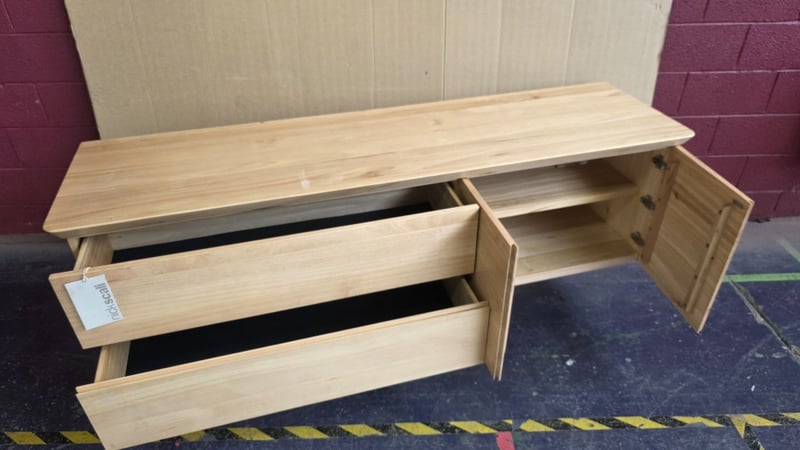 Buffet, timber buffet with x2 drawers x1 cupboard, colour brown Dimensions approx 70cm H x 197cm W x 55cm D