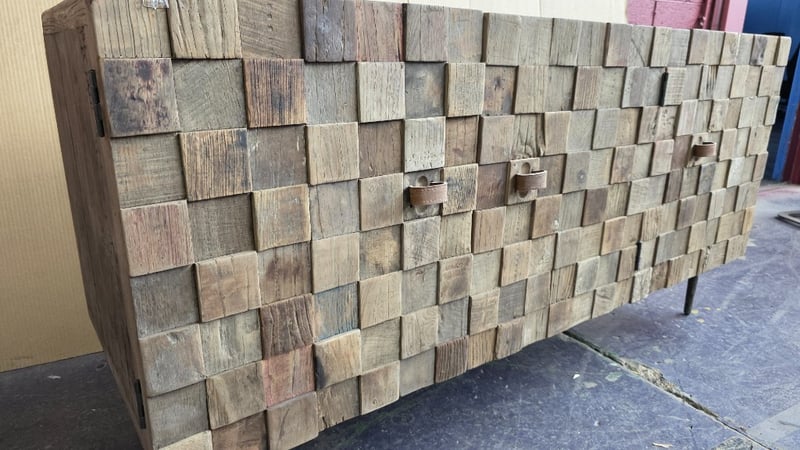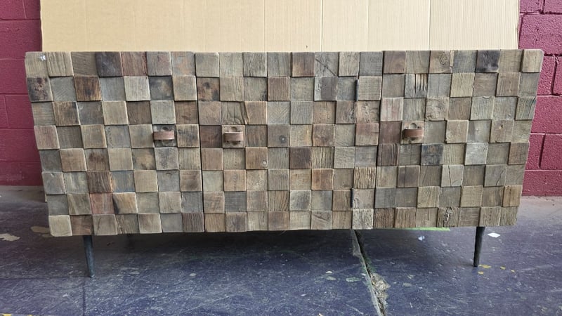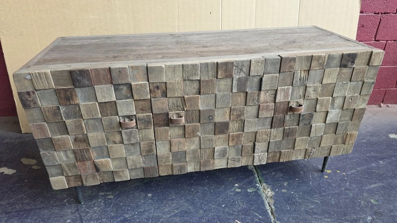 Buffet Cabinet, buffet cabinet with textured timber finish with metal legs