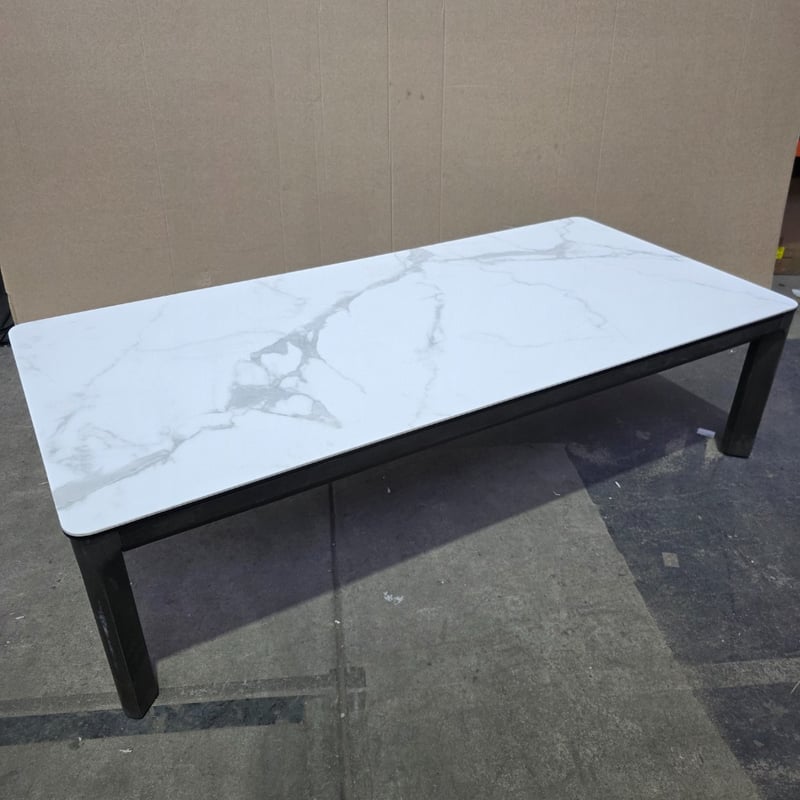 coffee table, ceramic and timber coffee table Dimensions approxx 41cm H x 70cm W x 150cm D