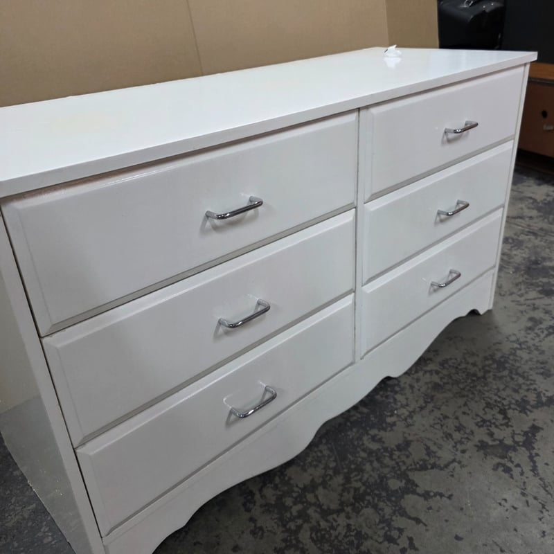 Chest of drawers, timber style chest of drawers includes 6x drawers with metal handles