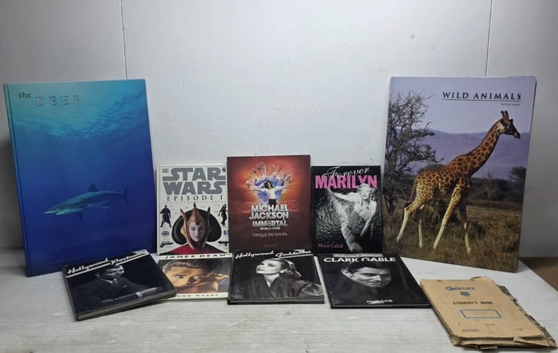 Books, assorted books including vintage style holywood portraits books, star wars books and newspaper book