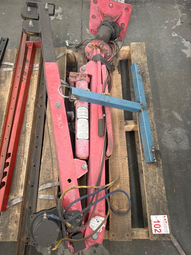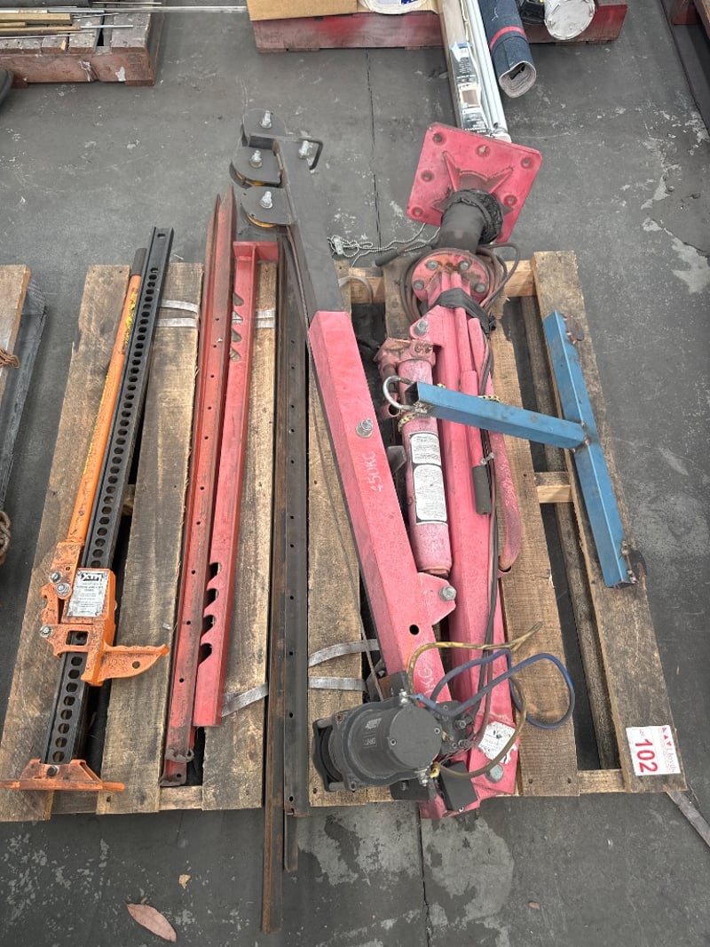 Pallet Of Various Items, Including Truck Mounted Crain 450KG Rated With Electric Motor, 4x4 High Lift Jack 1500KG Rated, and more
