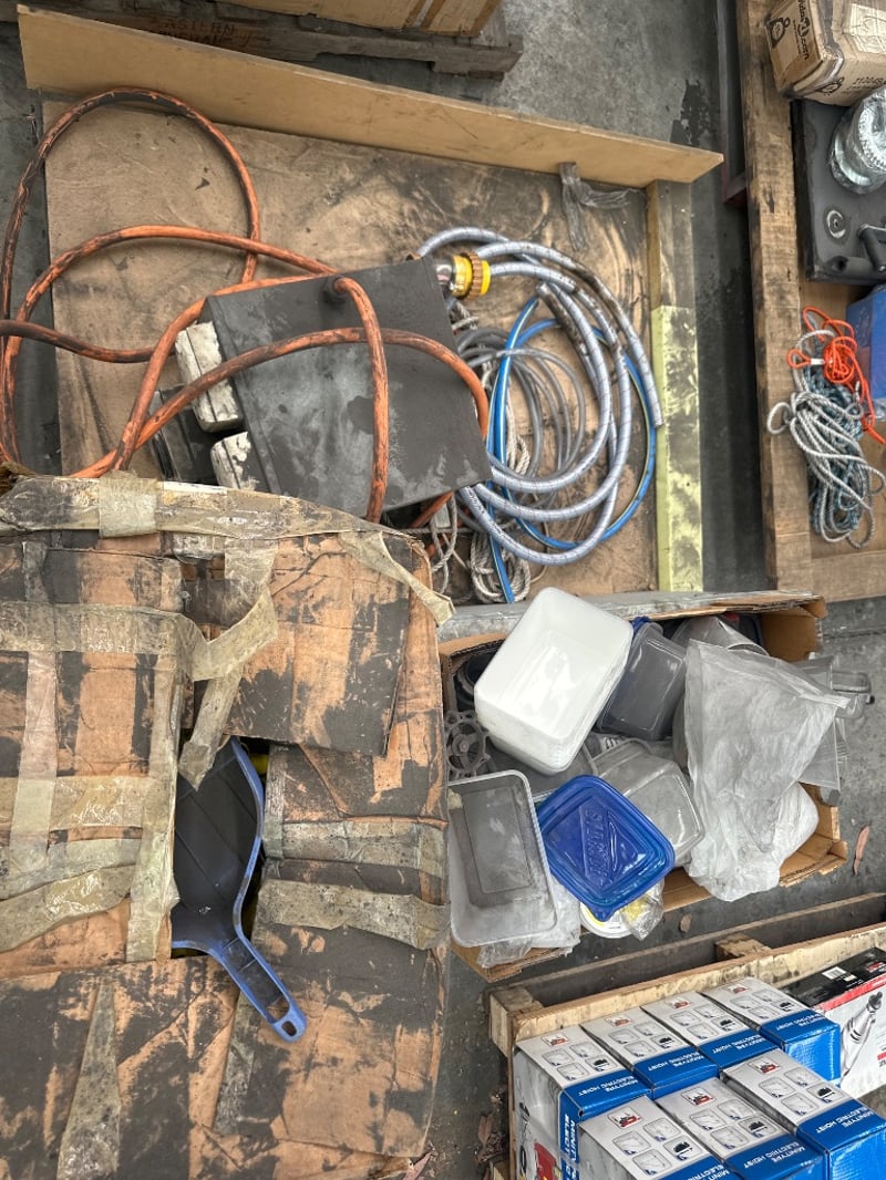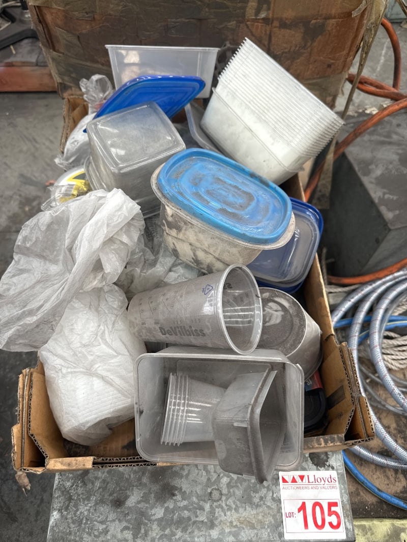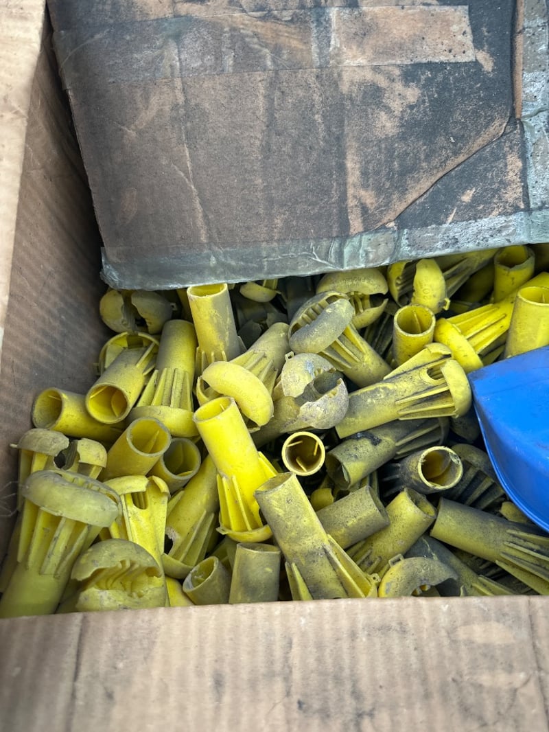 Pallet Of Various Items Including, Clear Plastic Containers, Plastic Yellow Caps And Small Electrical Box SOLD AS LOT