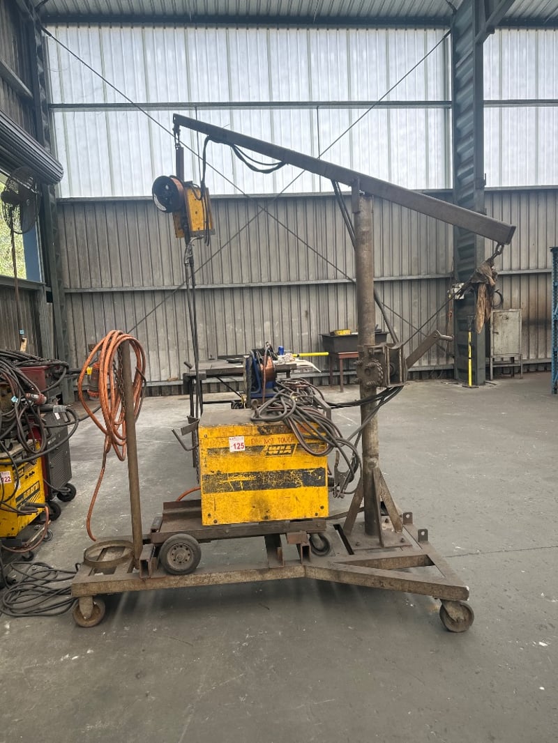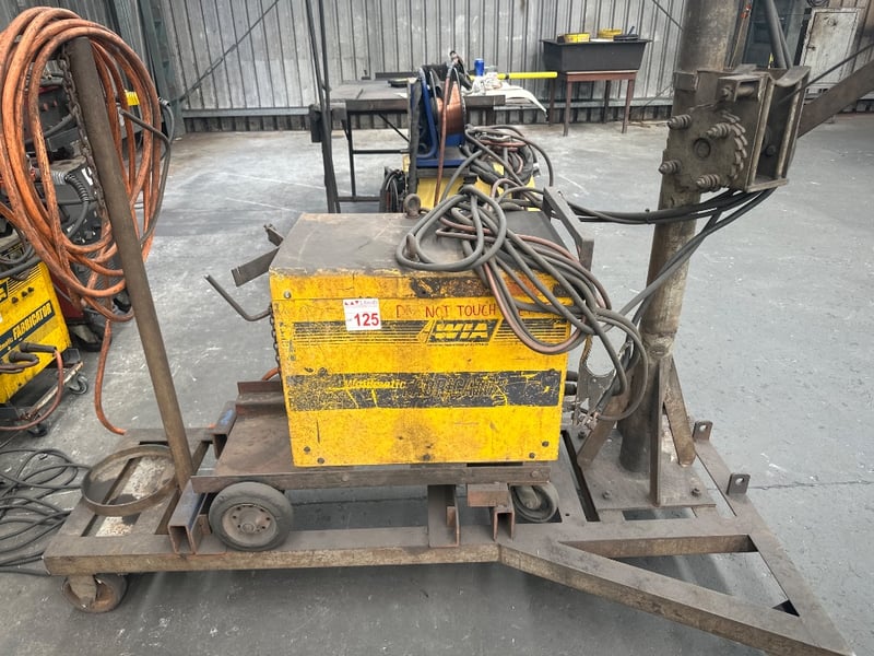 Industrial Welder, WIA Weldmatic Welder On Trolley With Wheels And Crain Extension