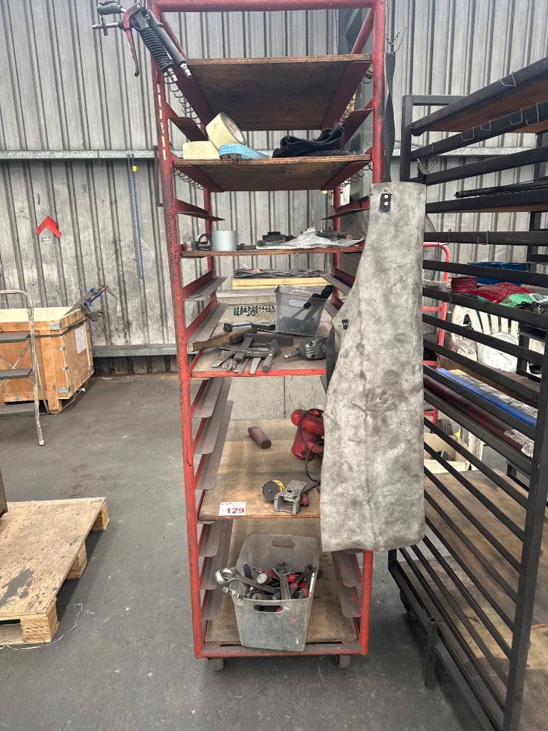 Trolley Rack Of Various Tools And Equipment SOLD AS LOT
