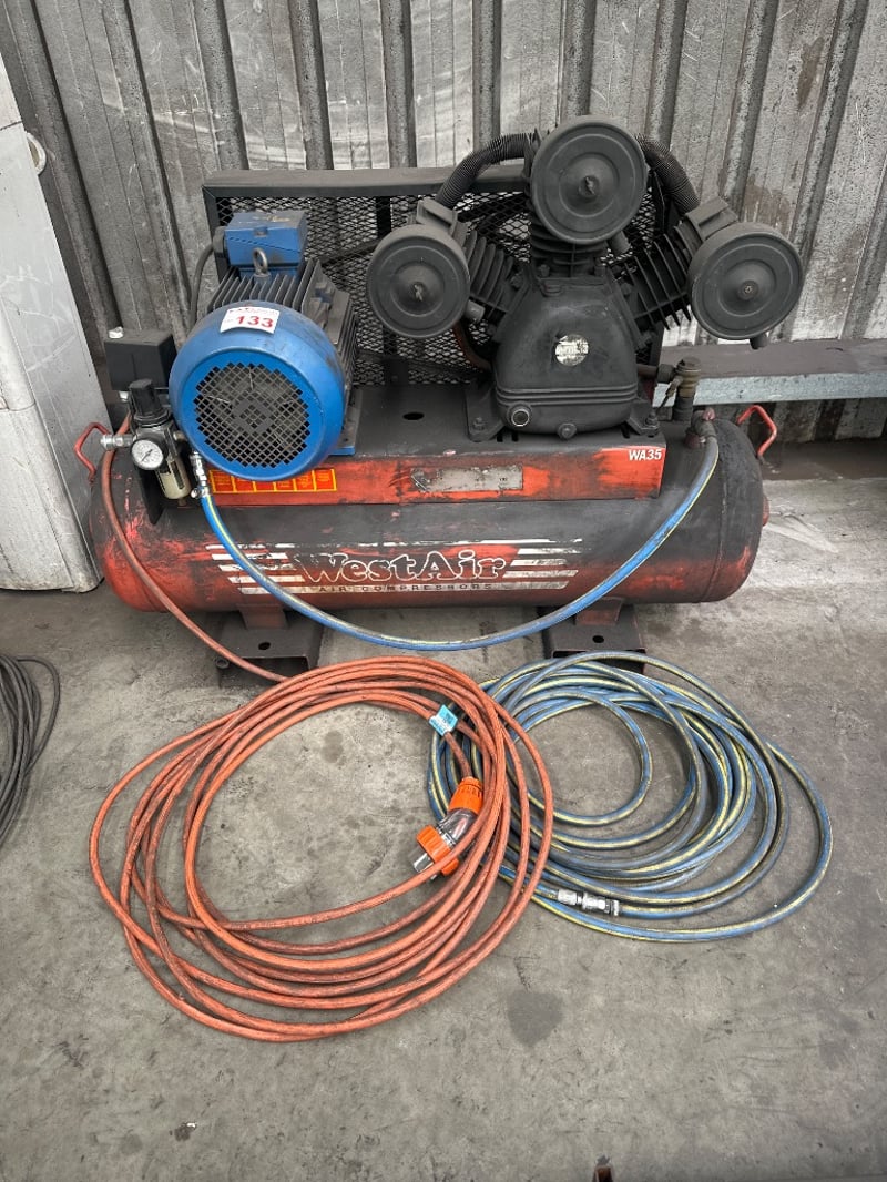 West Air Industrial Air Compressor, With Air Line SOLD AS LOT