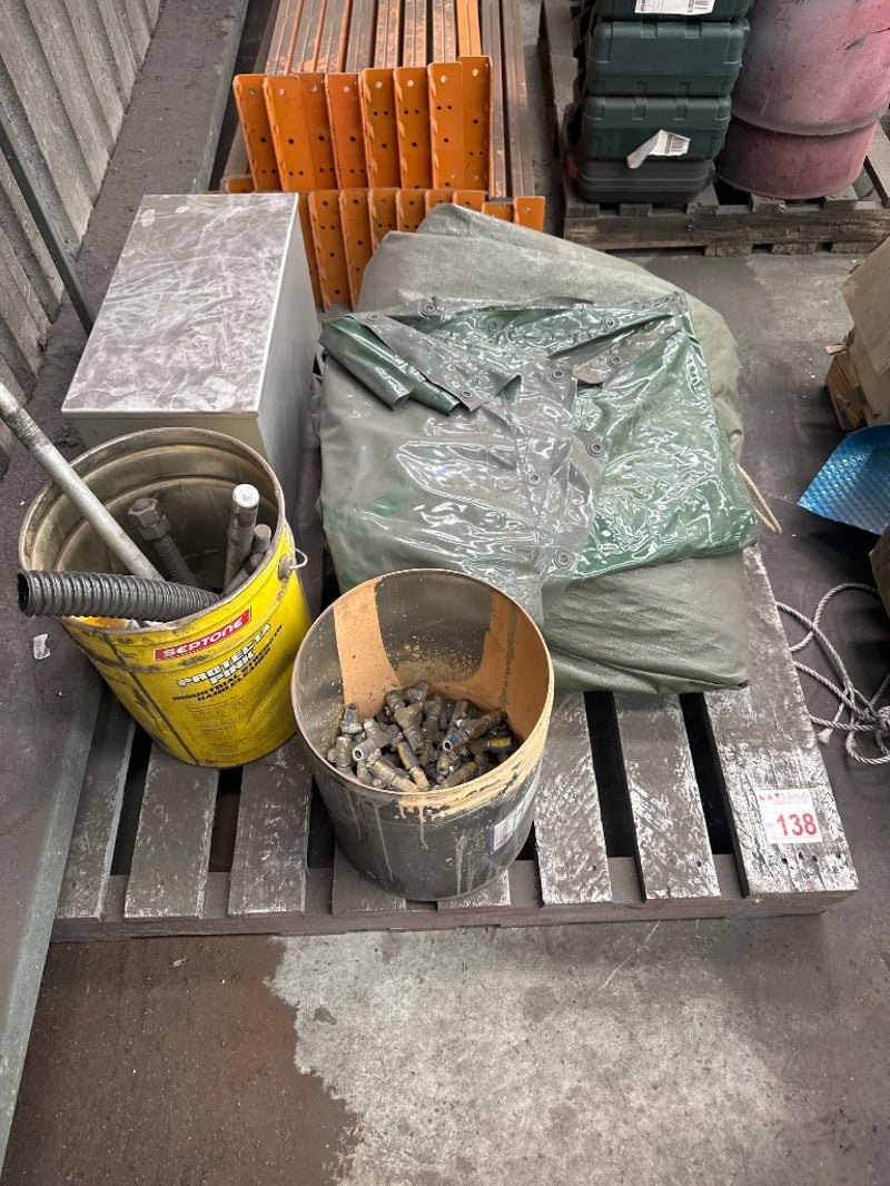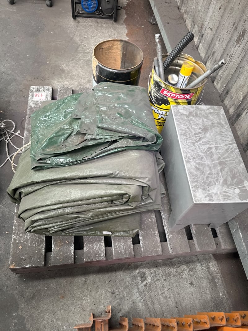 Pallet Of Various Items From T Fittings to Tarps SOLD AS LOT