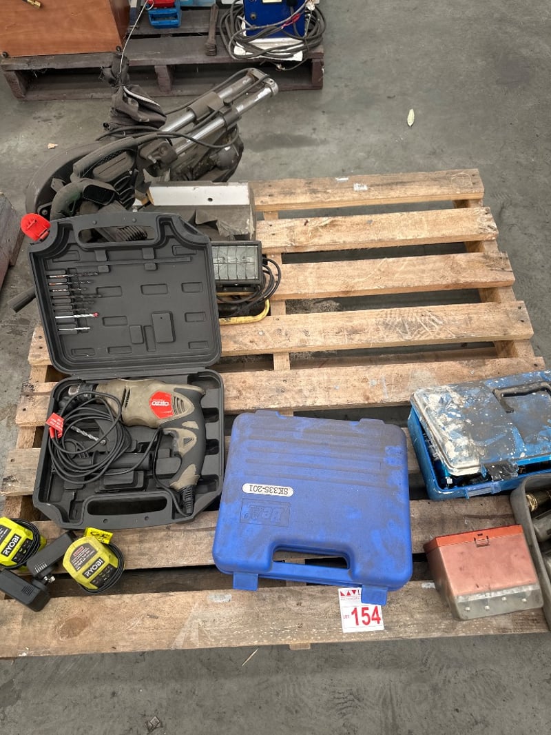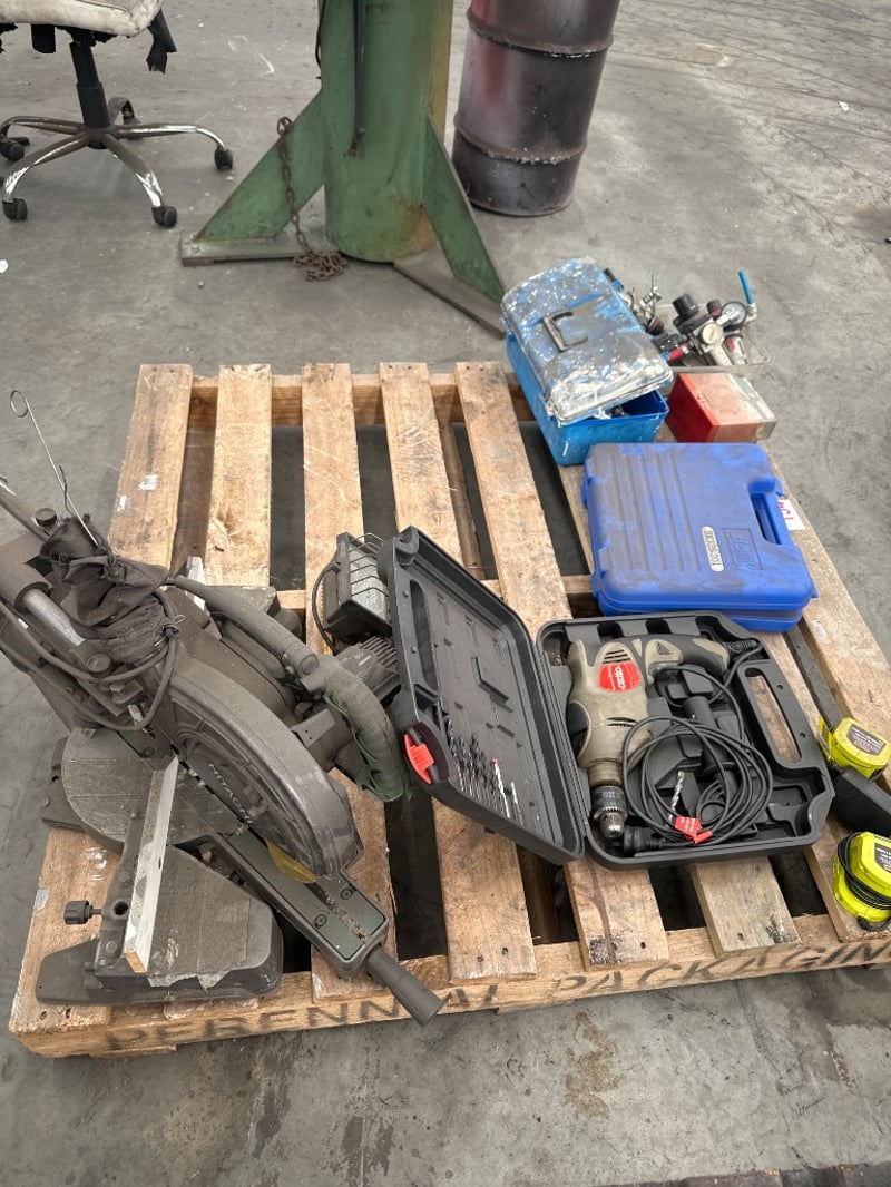 Pallet Of Various Items From Air Line Fittings To Drop Saw