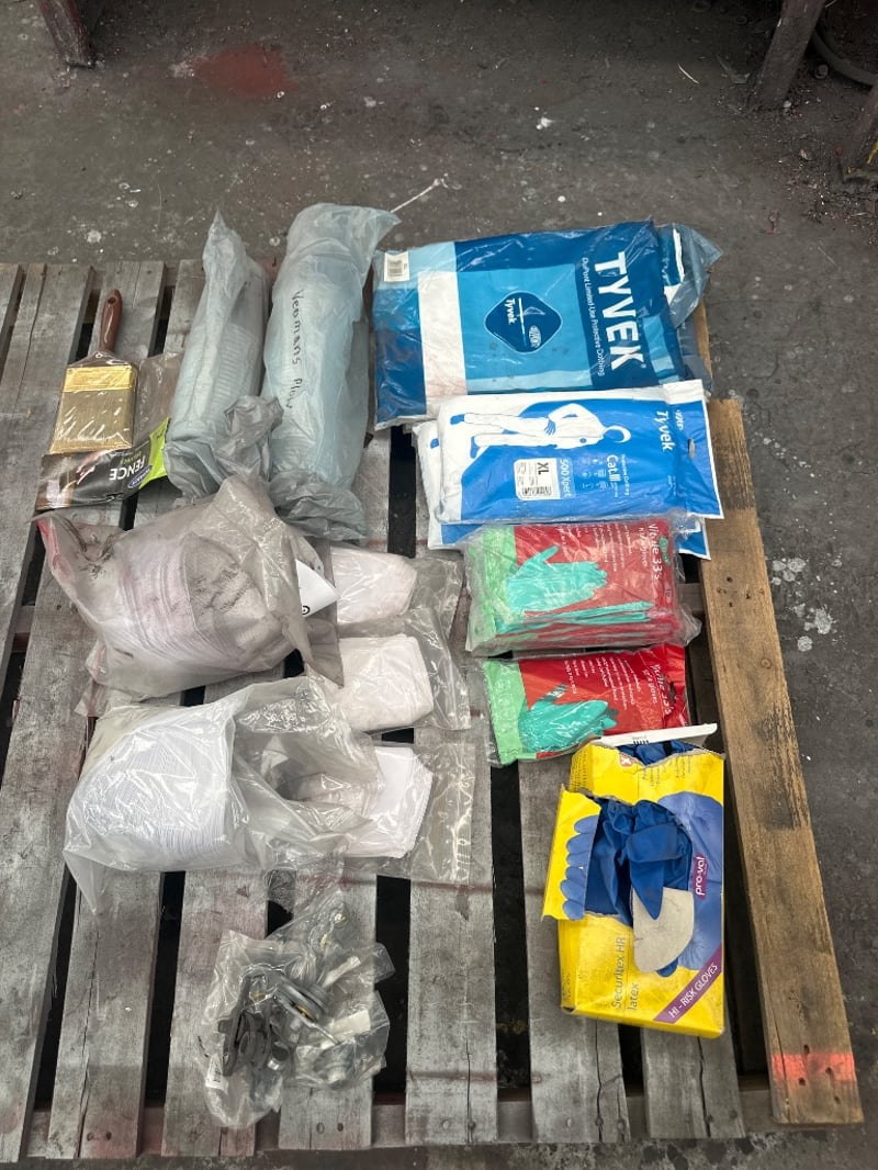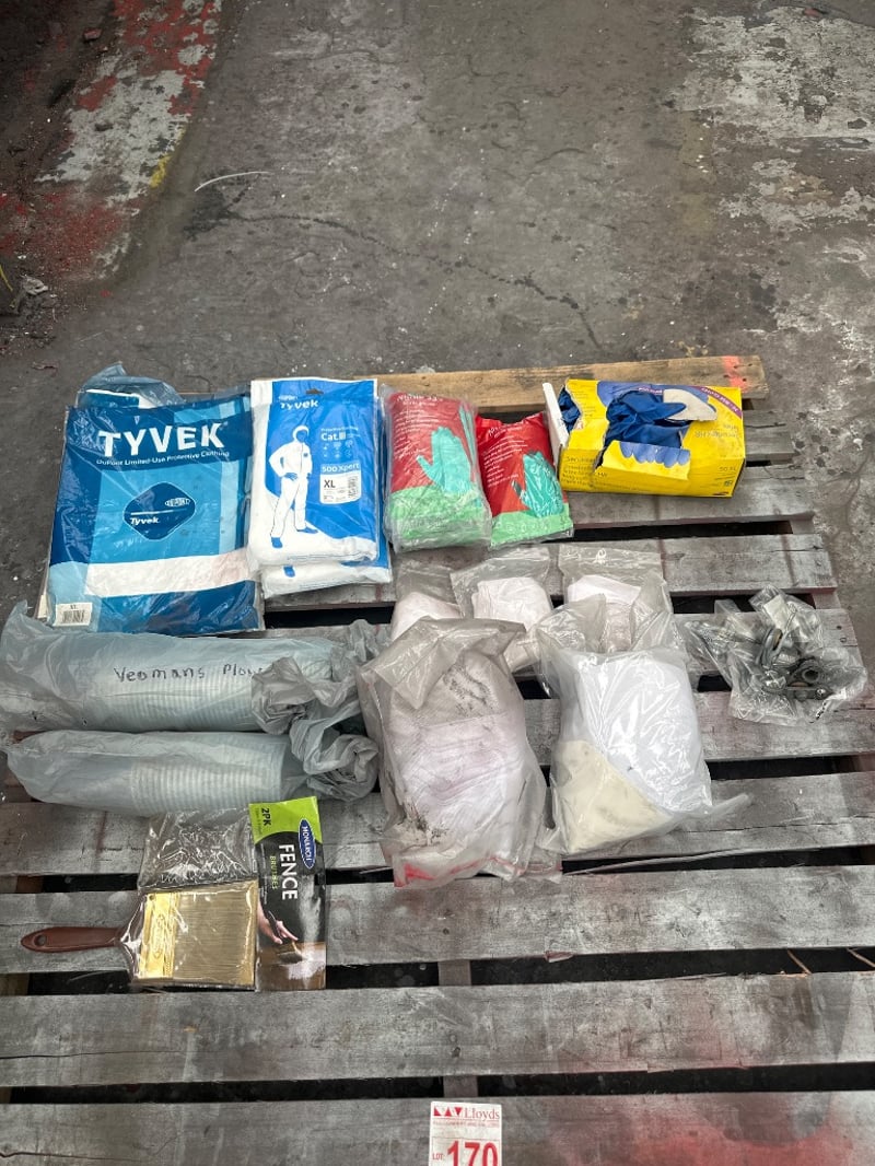 Pallet Of Painting Equipment, Gloves, Protective Clothing, Filters And More
