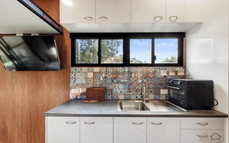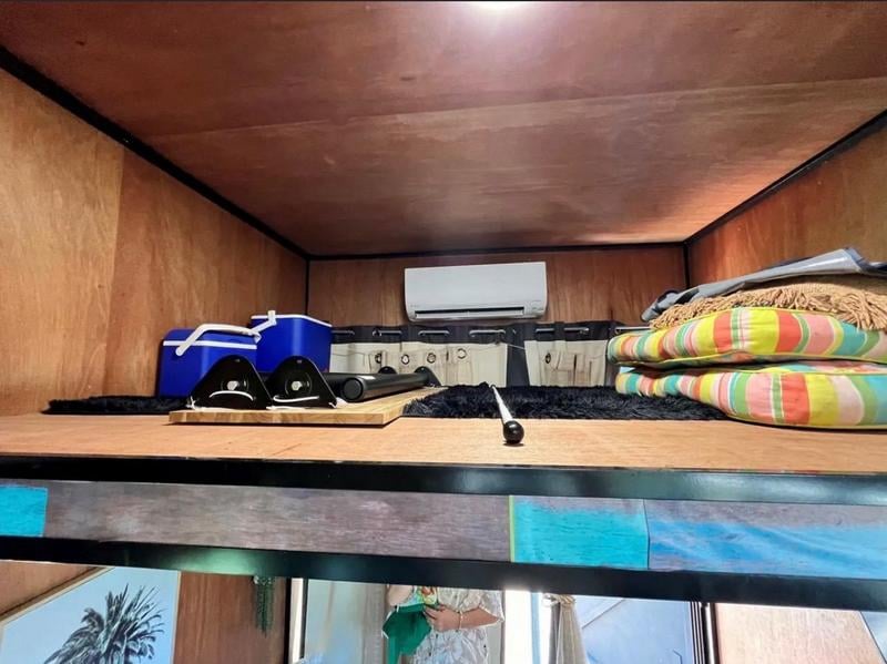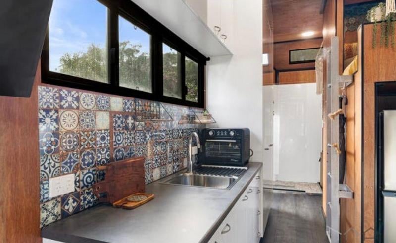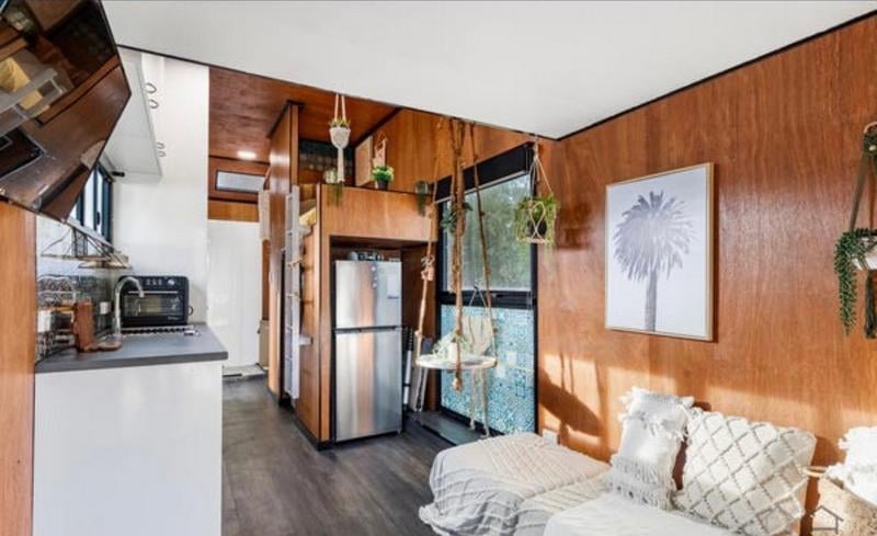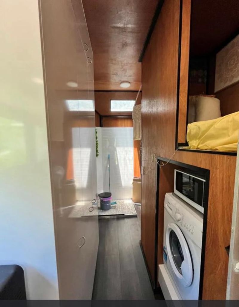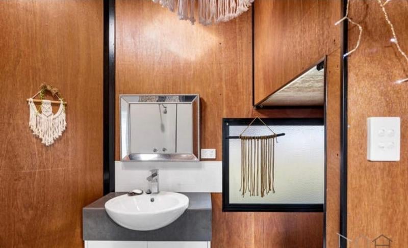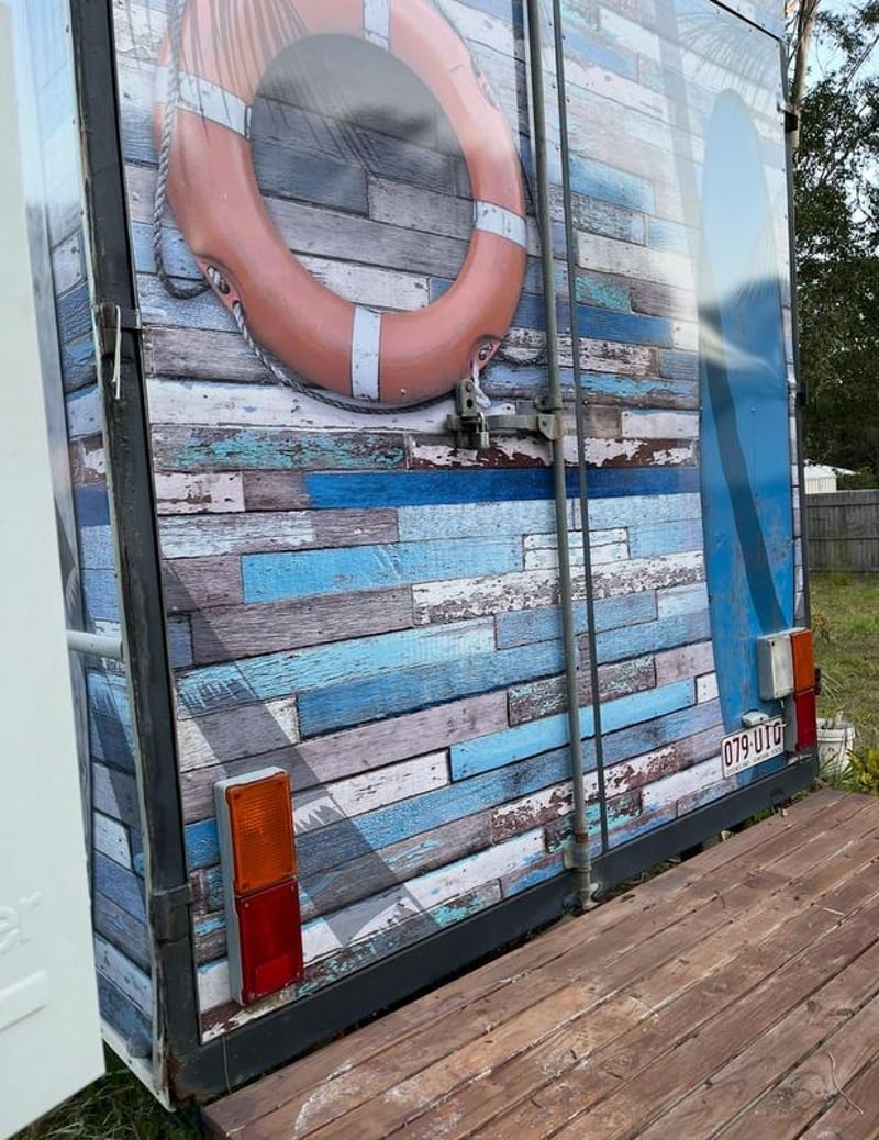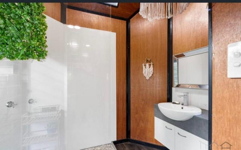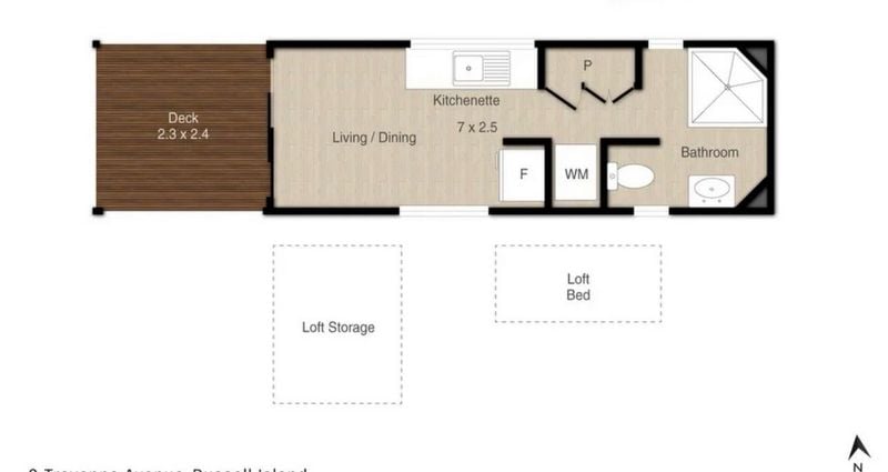7 x 2.5 Tiny Home on Trailer Floor Plan Information (Extracted) Outdoor Deck: 2.3 m × 2.4 m Internal Layout Living / Dining Area: Open‑plan (combined space) Kitchenette: Dimensions: 7.0 m × 2.5 m Located centrally within the living/dining space Bathroom: Includes shower, toilet, and basin Laundry / Utilities: WM: Washing Machine space F: Fridge space Pantry / Storage: Sleeping & Storage Loft Bed: Elevated sleeping area Loft Storage: Separate loft storage space General Notes Long, narrow studio-style layout Suitable for compact living / tiny home / transportable accommodation Trailer Year: 2006 Make: ET Trailers VIN: 6T9T23ABG502XM006 Location: Russell Island, QLD