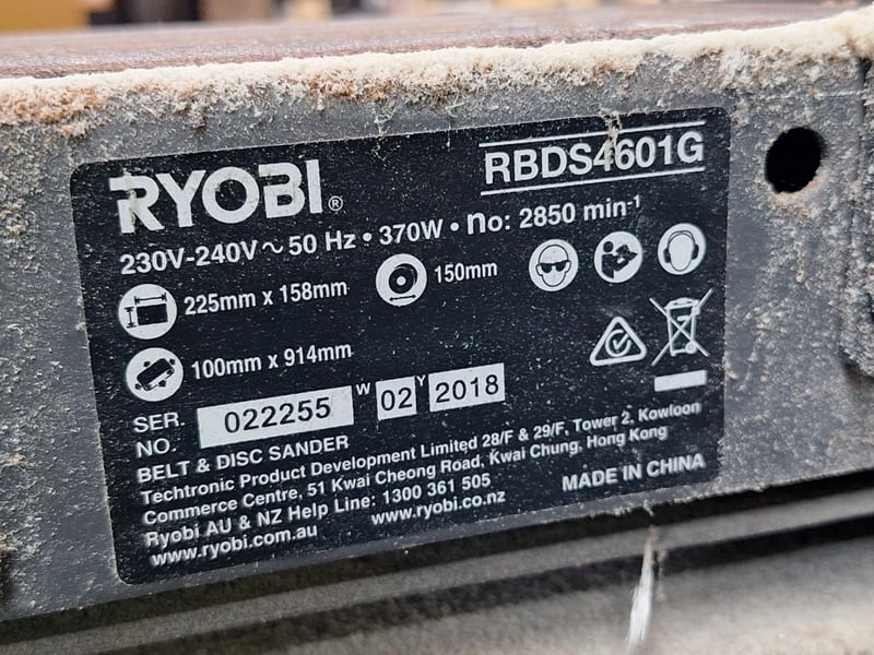 RYOBI Belt Sander, Serial: 022255, Last Servied 24-05-2023Dimensions Approx H: 880mm W:300mm × D:600mmPLEASE NOTE: Buyer Is Responsible For Bringing Appropriate Equipment To Remove & Arrange Help For Collection.