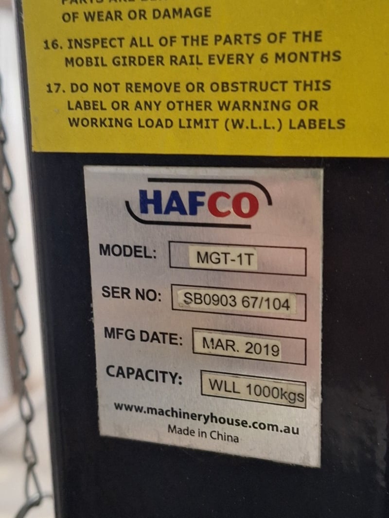 Portable Height-adjustable Girder Trolley, Model: MGT-1T, Serial SB0903 67/104
