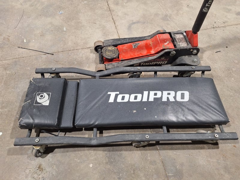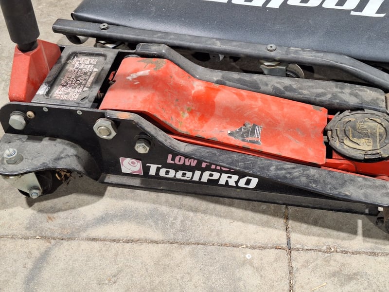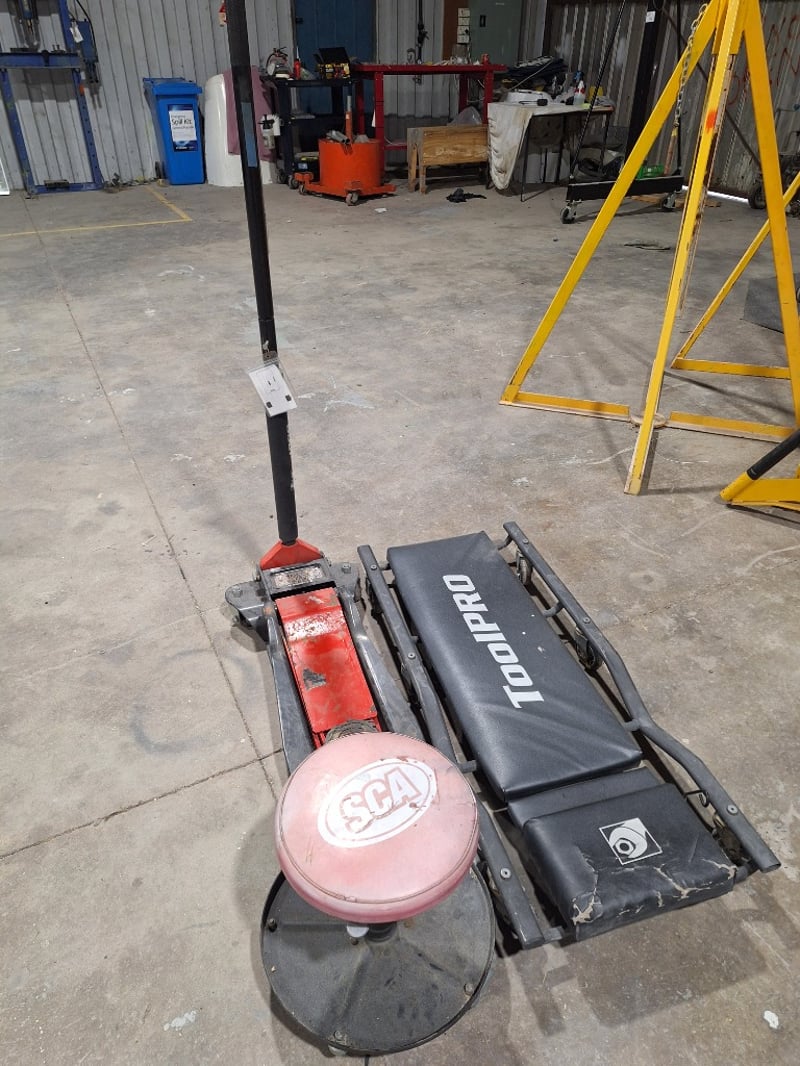Trolley Jack, Stool & ToolPRO Trolley SOLD AS LOTPLEASE NOTE: Buyer Is Responsible For Bringing Appropriate Equipment To Remove & Arrange Help For Collection.