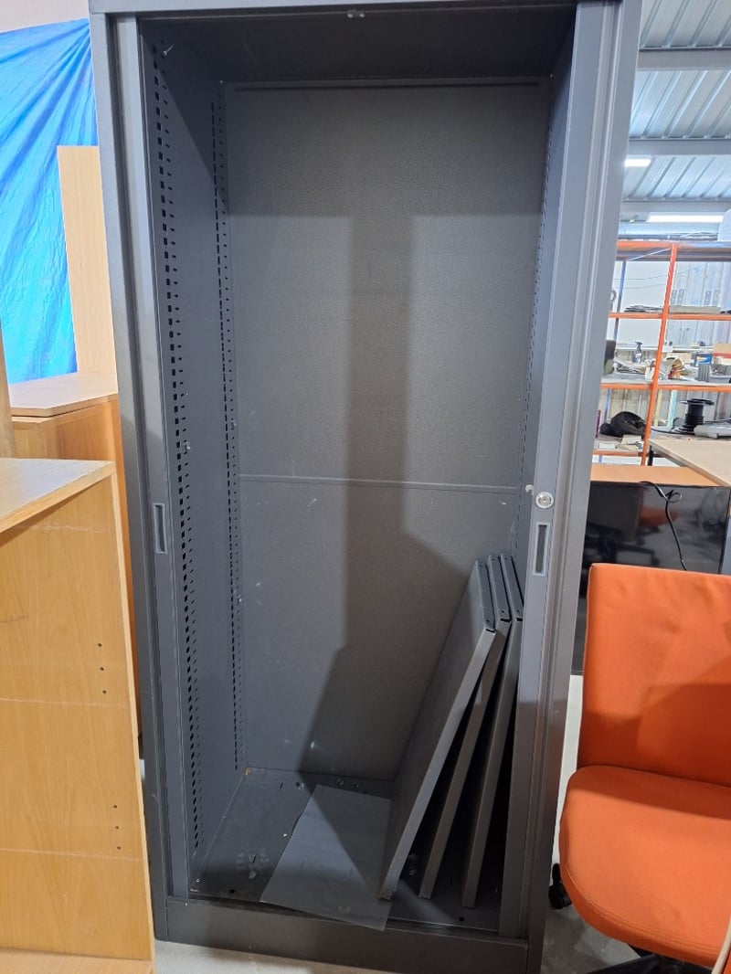 Storage Cabinet, Keys Not Included Metal Style, Grey FinishDimensions Approx H:2000mm W:900m D:500mmPLEASE NOTE: Buyer Is Responsible For Bringing Appropriate Equipment To Remove & Arrange Help For Collection.