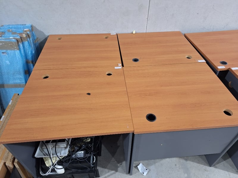 x4 Square Tables, Timber Style, Natural & Grey FinishDimensions Approx H:720mm W:800mm D:700mnPLEASE NOTE: Buyer Is Responsible For Bringing Appropriate Equipment To Remove & Arrange Help For Collection.
