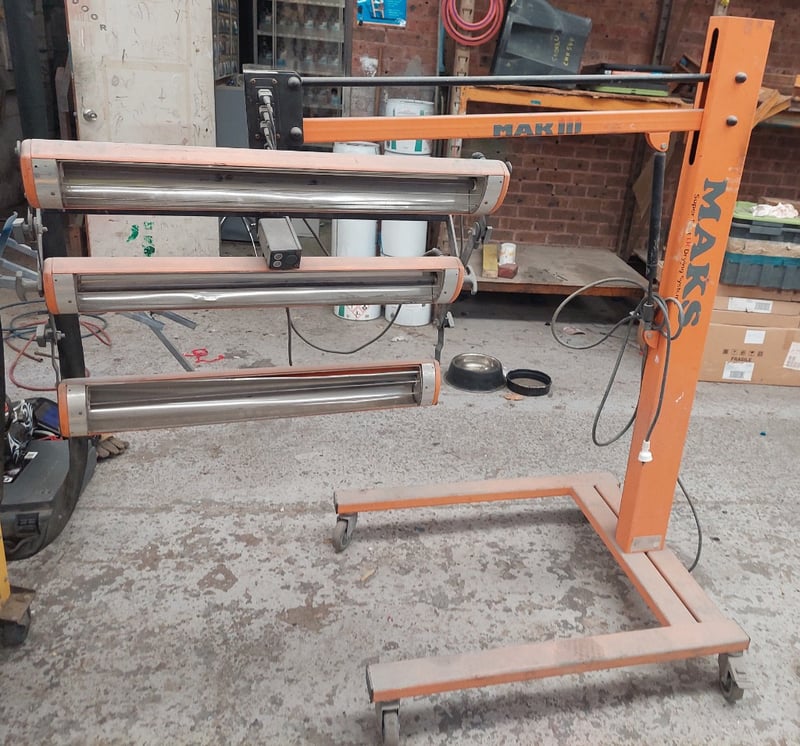 Vehicle Paint Curing Lamp - Maks MakIII, 3x adjustable, infrared lamps, analogue dial controls, mobile, DOM: 2010