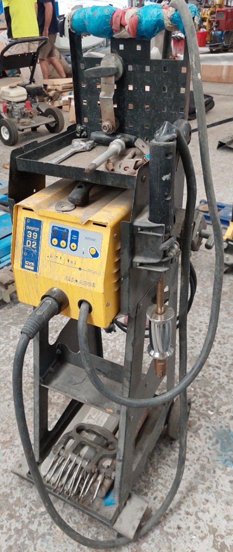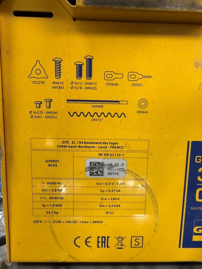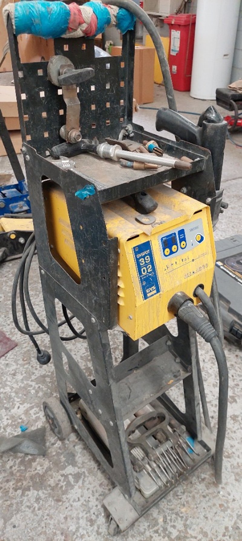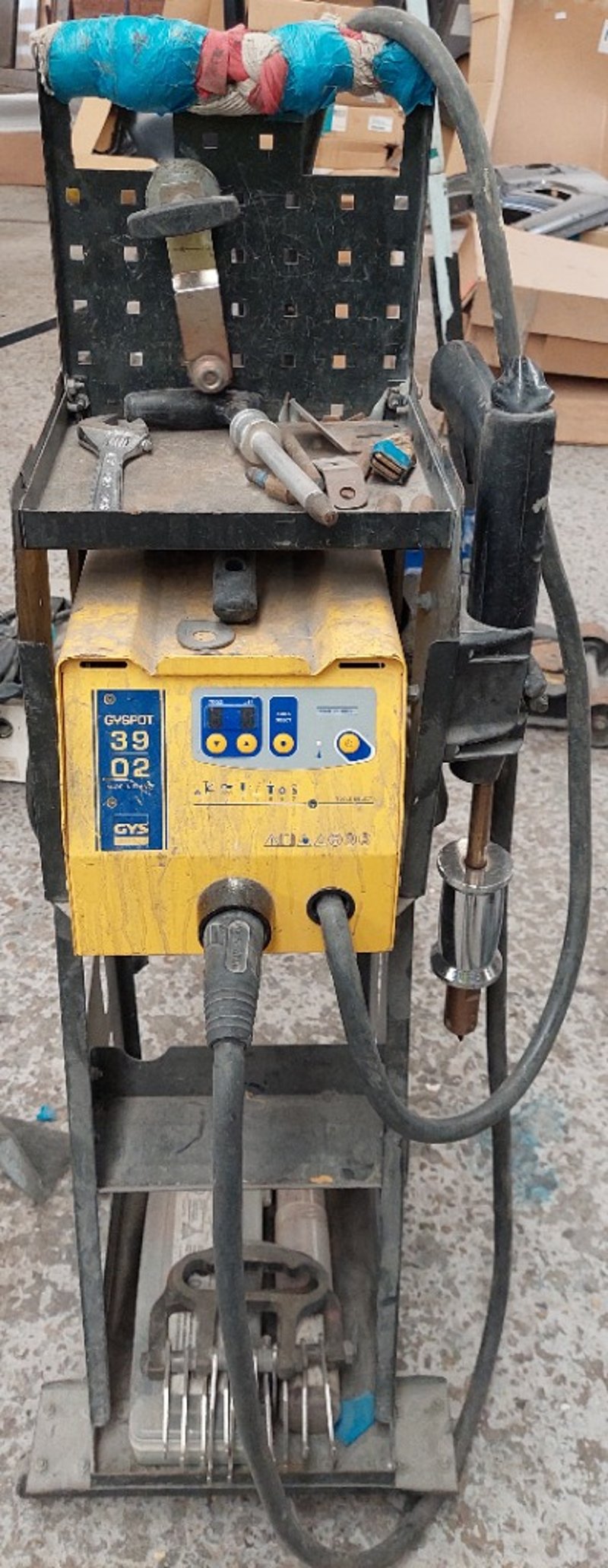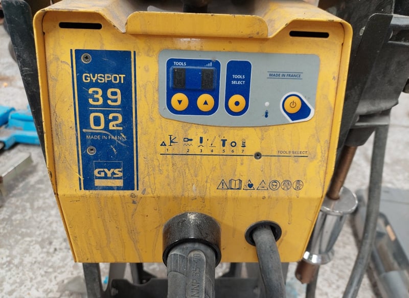 Dent Puller - GYS 39.02, LED digital controls, 3.8kVA, portable, on cart, DOM: 2018, S/N: 18.01.0.5832400748 with stud welder dent puller and cable, dent box with assorted consumables