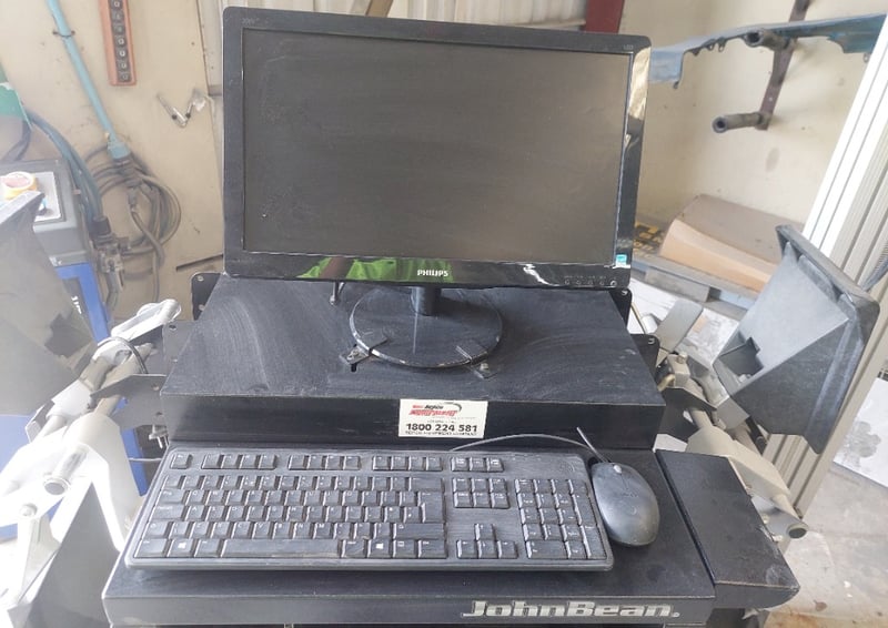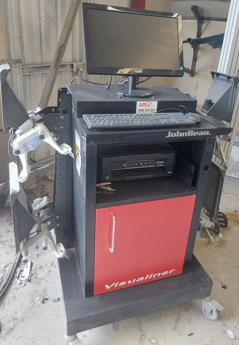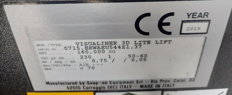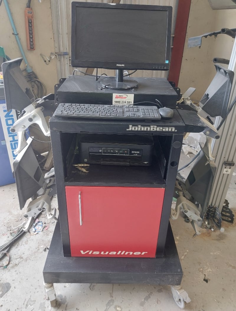 Imaging Diagnostic Wheel Alignment System - Snap-On John Bean Visualiner 3D Lite Lift model EEWAEU544Z1, DOM: 2015, S/N: 0715.EEWAEU544Z1.37 comprising mobile control cabinet with Dell OptiPlex 3020 Pentium computer, Philips 200VLA 20" LED monitor, USB keyboard and mouse and Epson XP-235 printer, aluminium height adjustable sensor post, 4x AC100 wheel clamps