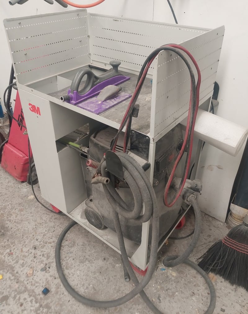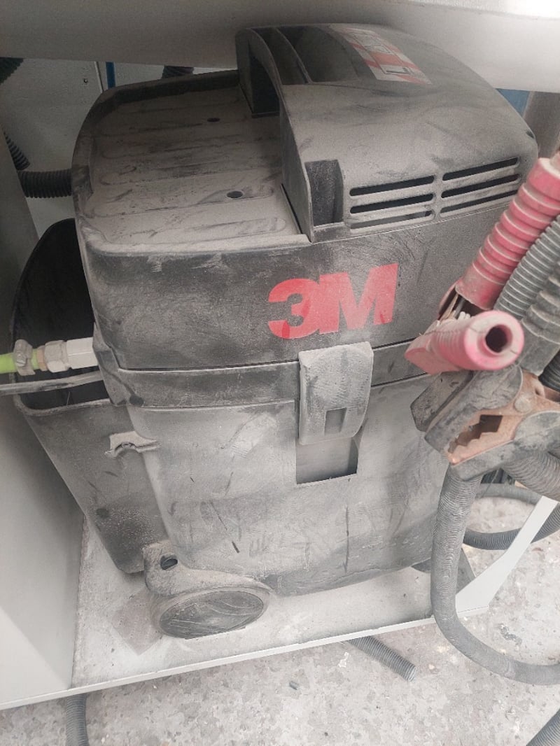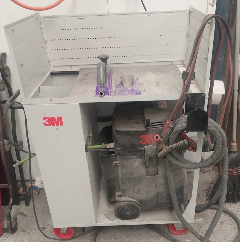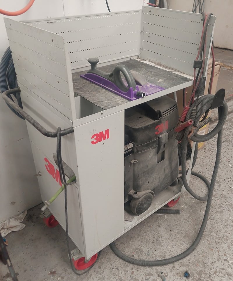 Dust Extraction System - Comprising 3M MS145EPL 1200W vacuum, DOM: 2022, S/N: 3587 in grey steel cart with 2x 3M multi-hole sanding planers