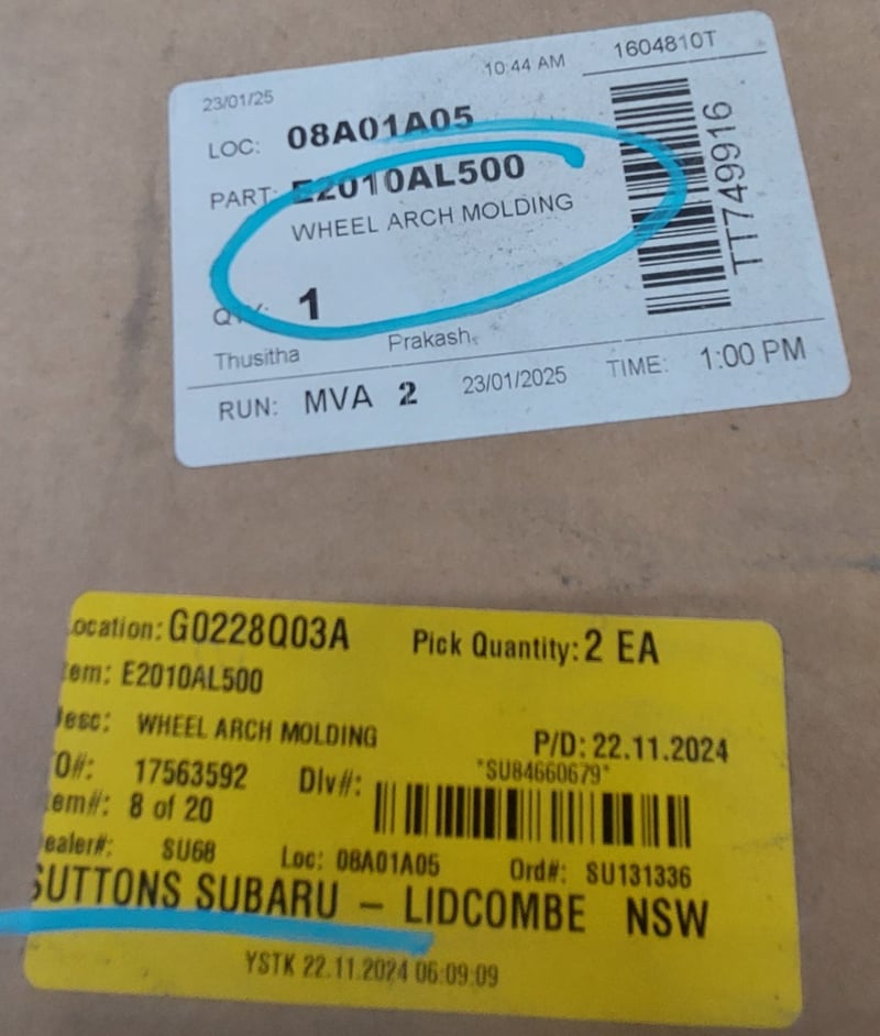 Wheel arch molding ,Subaru brand.Qty: 13Sold as lot. Notes: signs of wear.