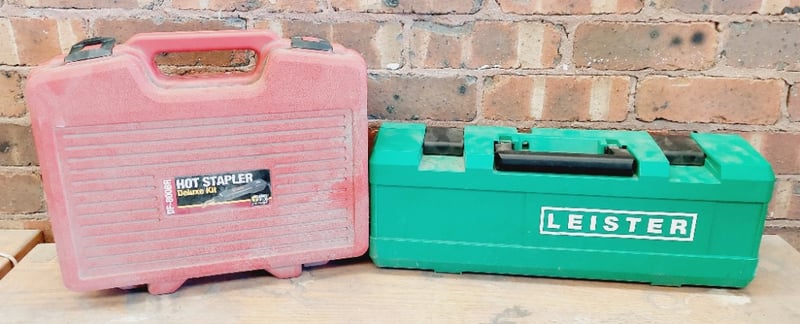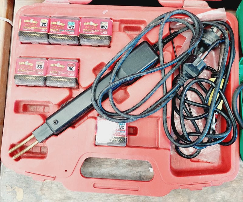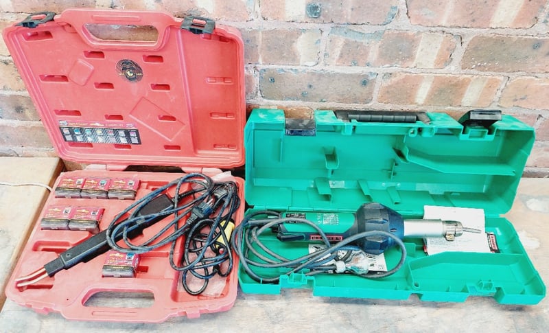 Assorted tools including, Leister TRIAC ST hot air welding gunDent Fix Equipment DF-800BR Hot Stapler Deluxe KitSold as a lot.Note: items are untested, signs of wear.