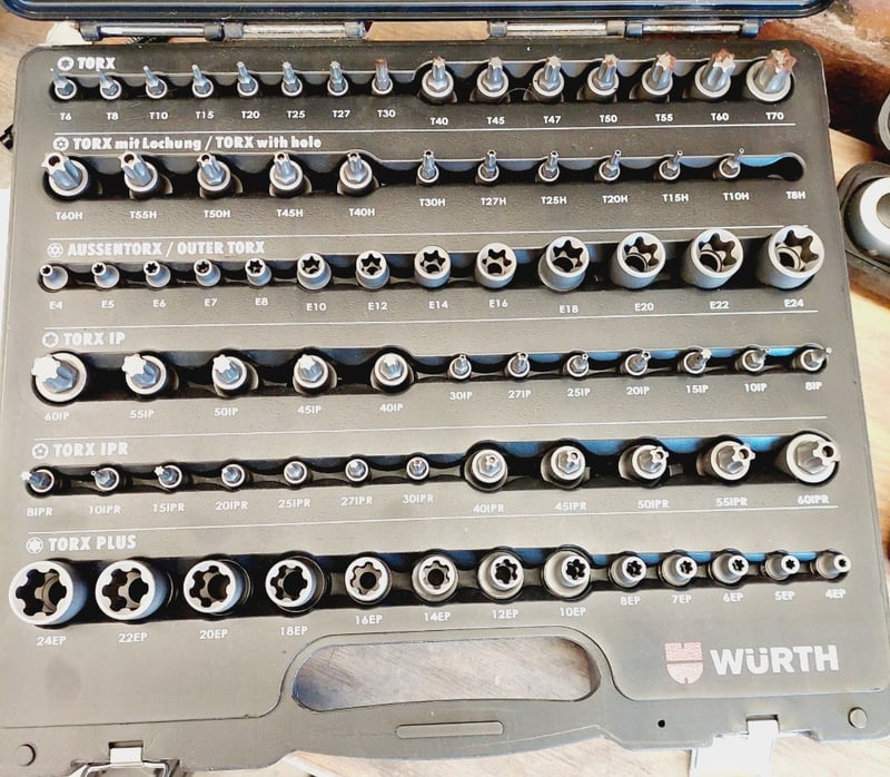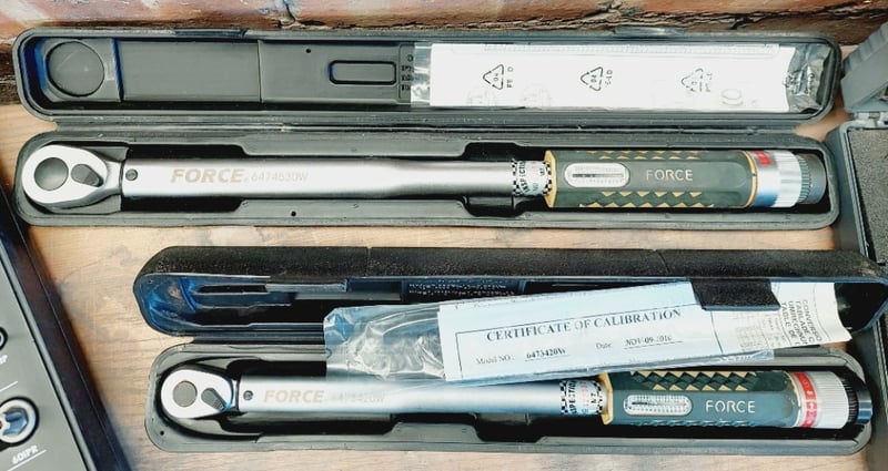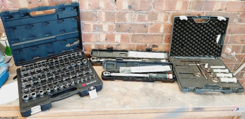 Assorted tools and accessories including, Würth torx socket wrench set, Force brand industrial torque wrenches and sensor hole punching kit. Sold as a lot.Note: items are untested, signs of wear.