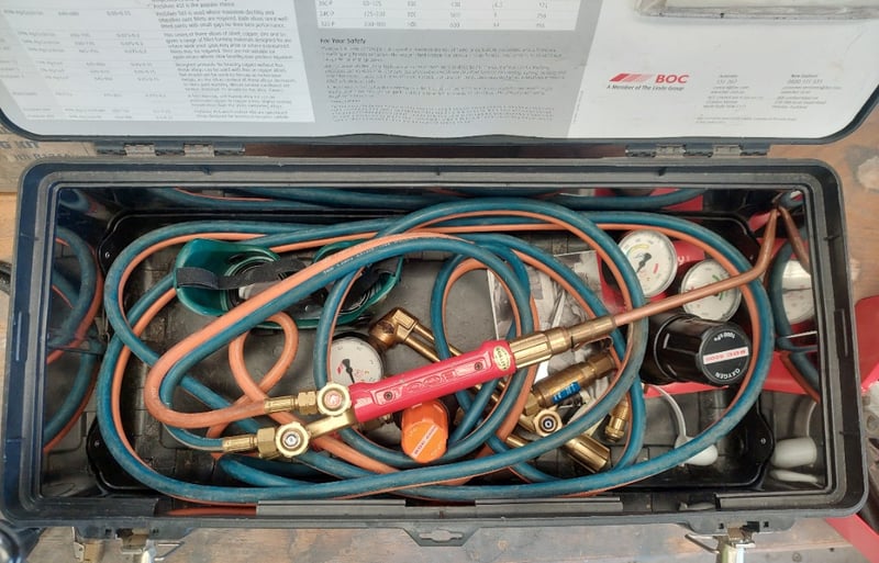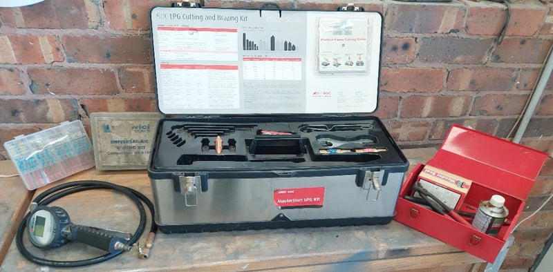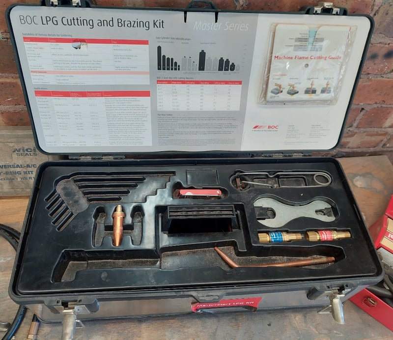 Assorted tools including, BOC MasterStart LPG Cutting and Brazing Kit, Wurth Digital Tyre Inflator with Gauge, Universal A/C O-Ring Kit and more...