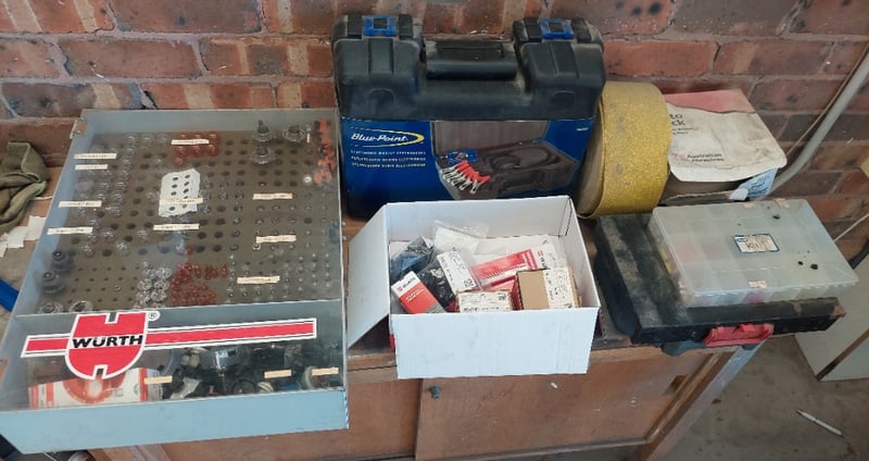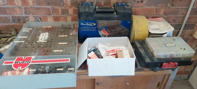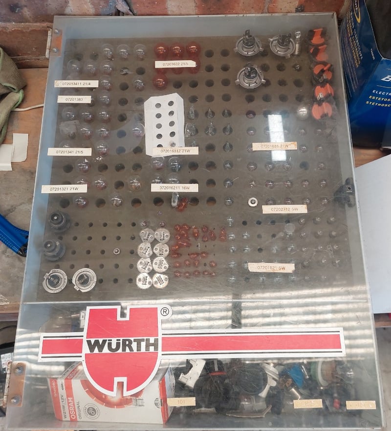 Assorted tools and accessories, including Blue-Point YA6920 Electronic Marine Stethoscope, Würth brand automotive bulb assortment kit and more...Sold as a lot.Note: items are untested, signs of wear.